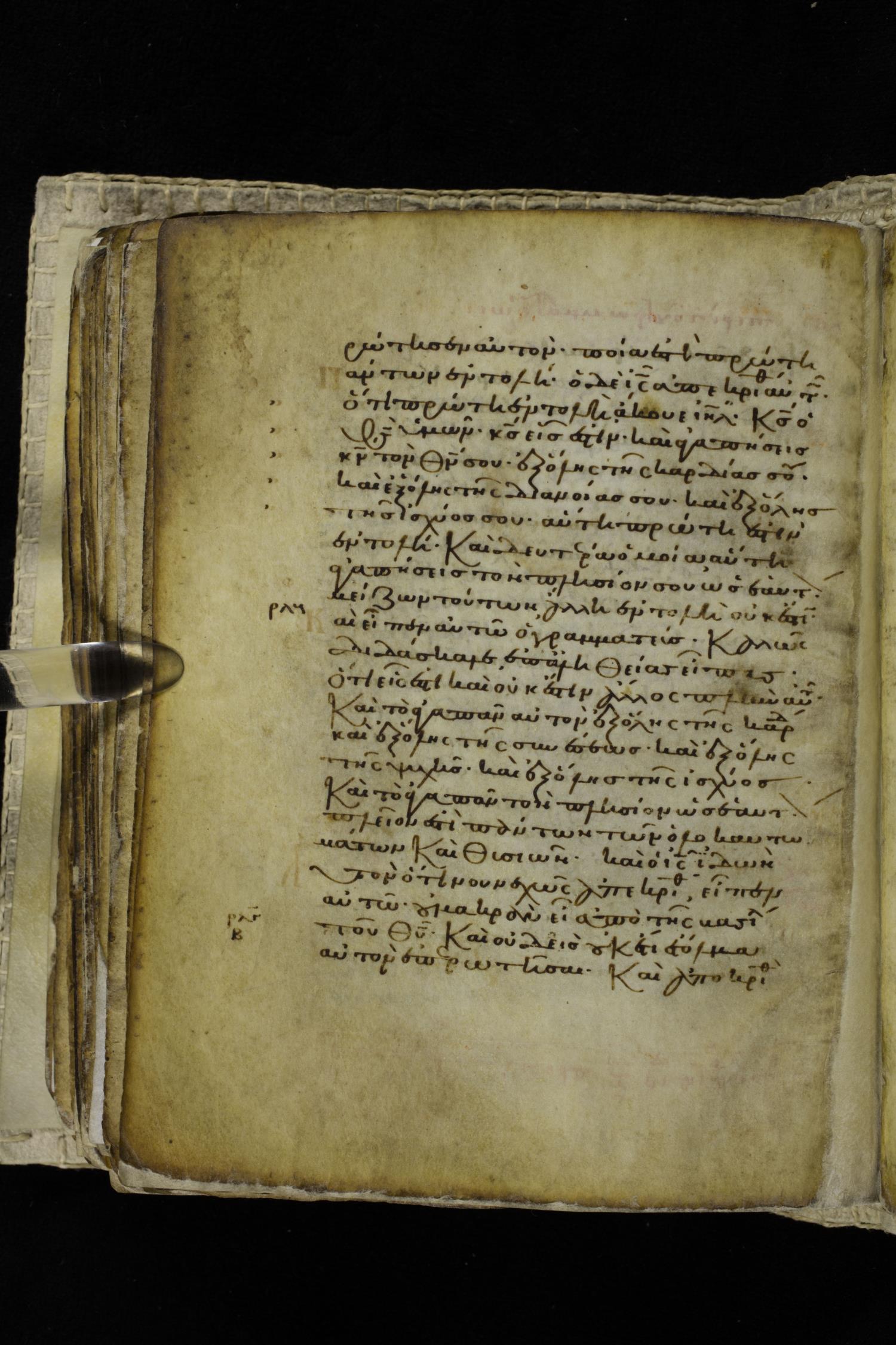 Eleventh century minuscule of the Gospels on parchment; 262 leaves, single column, 22-23 lines per column. Images were taken at the Hellenic Parliament Library in Athens.