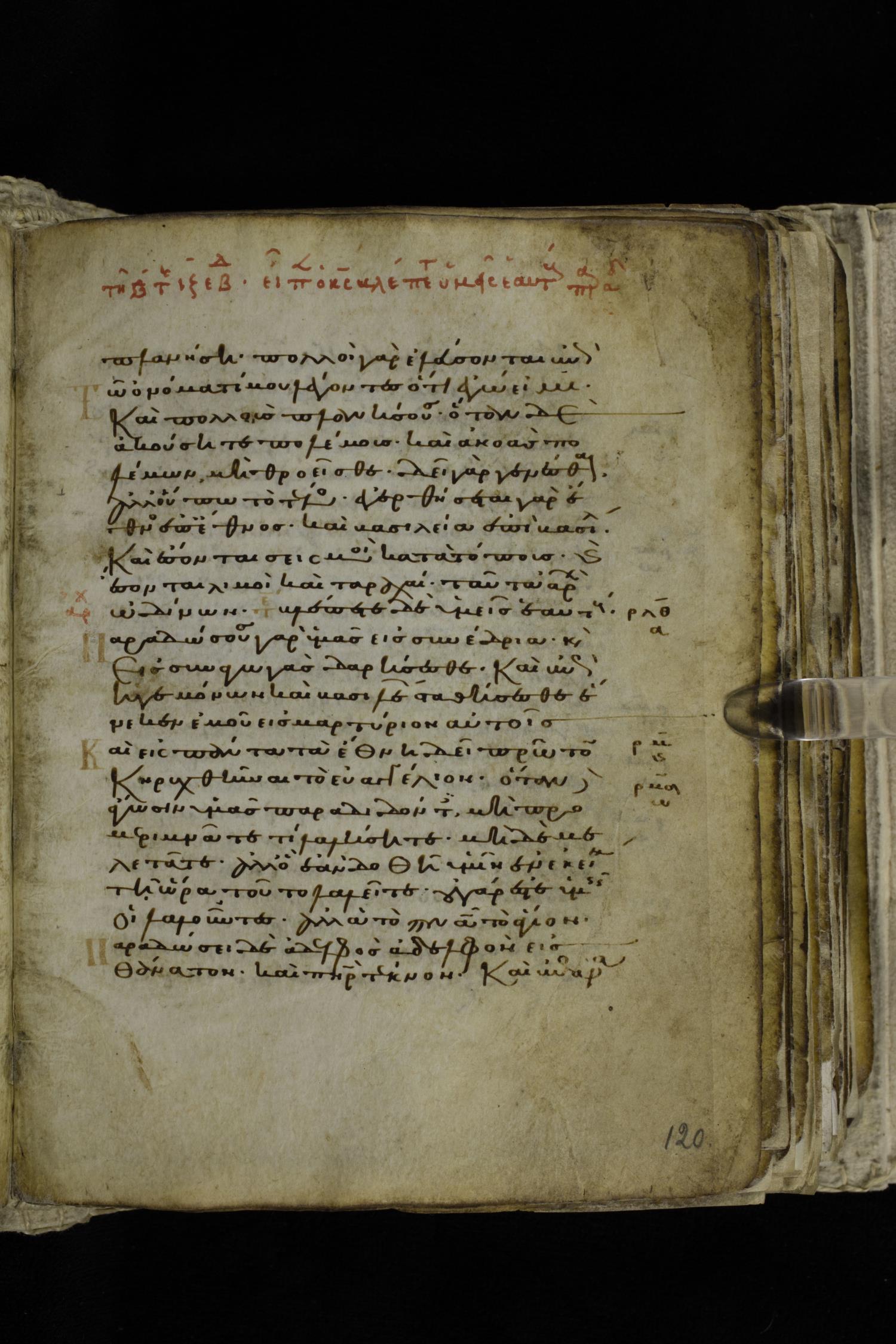 Eleventh century minuscule of the Gospels on parchment; 262 leaves, single column, 22-23 lines per column. Images were taken at the Hellenic Parliament Library in Athens.