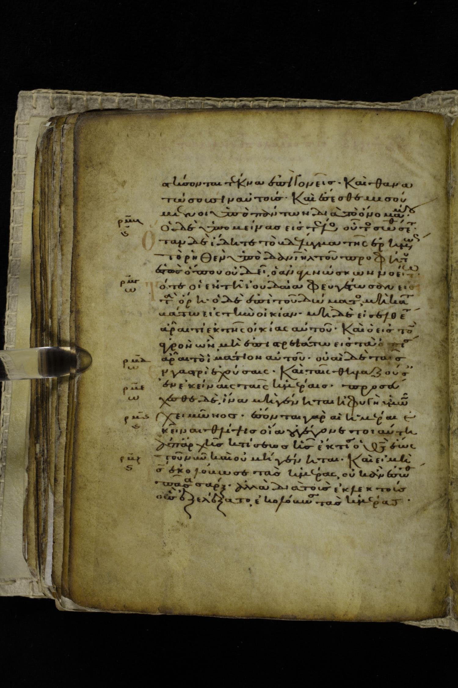 Eleventh century minuscule of the Gospels on parchment; 262 leaves, single column, 22-23 lines per column. Images were taken at the Hellenic Parliament Library in Athens.