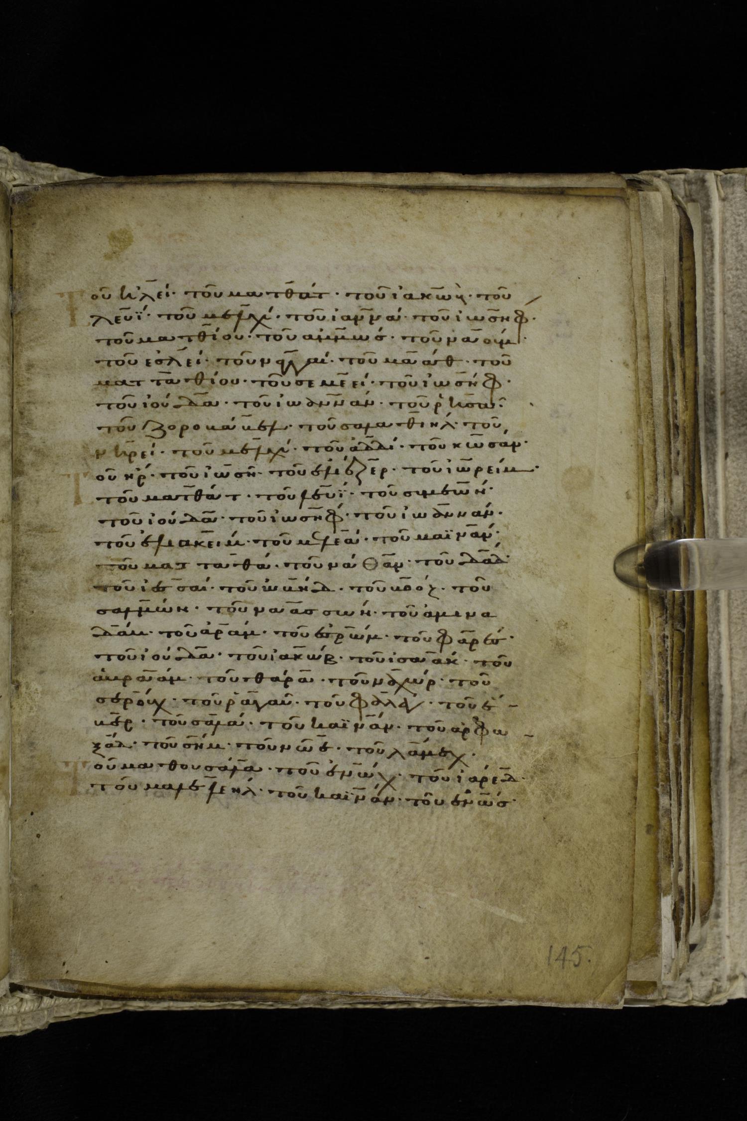Eleventh century minuscule of the Gospels on parchment; 262 leaves, single column, 22-23 lines per column. Images were taken at the Hellenic Parliament Library in Athens.