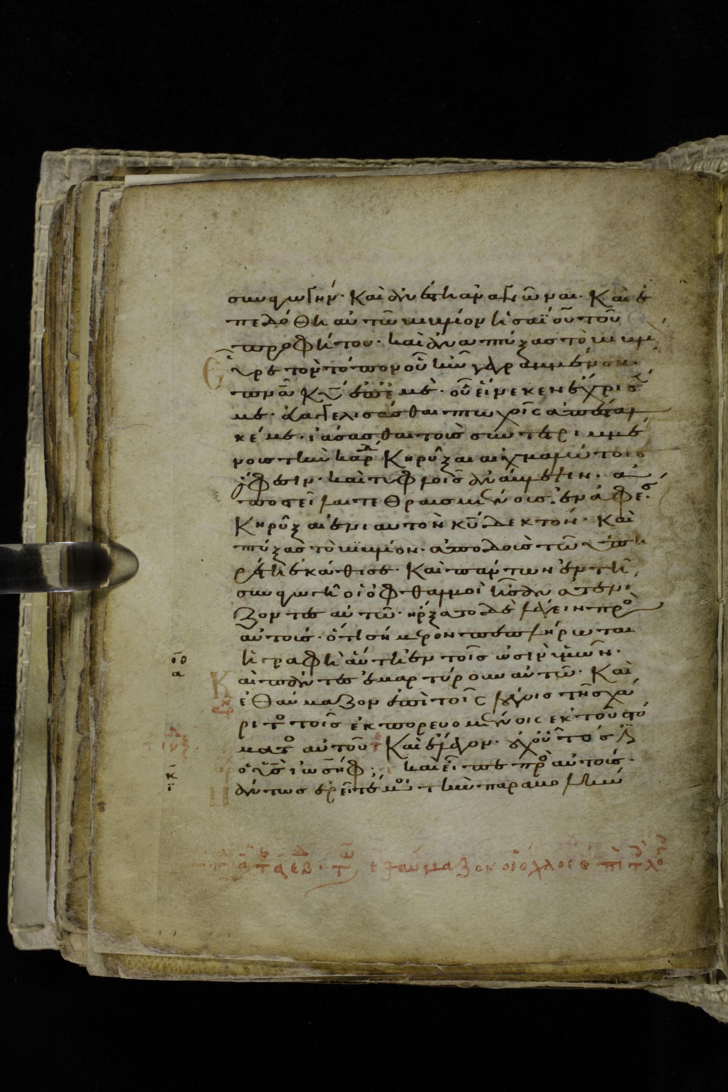 Eleventh century minuscule of the Gospels on parchment; 262 leaves, single column, 22-23 lines per column. Images were taken at the Hellenic Parliament Library in Athens.