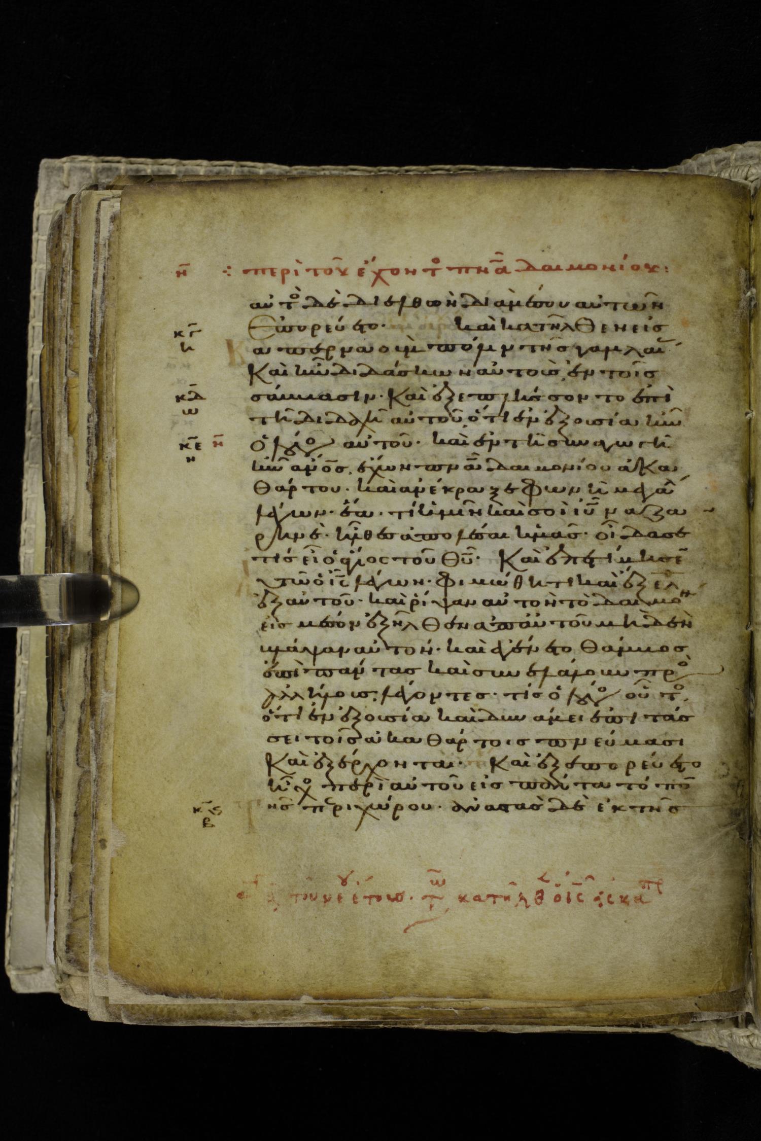 Eleventh century minuscule of the Gospels on parchment; 262 leaves, single column, 22-23 lines per column. Images were taken at the Hellenic Parliament Library in Athens.