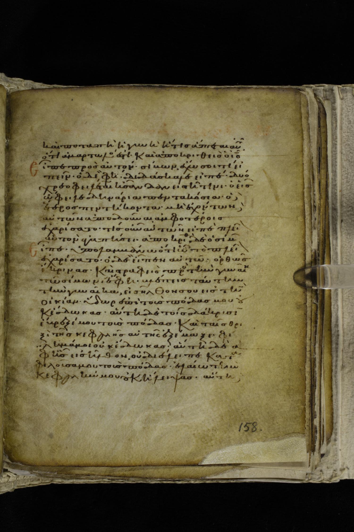 Eleventh century minuscule of the Gospels on parchment; 262 leaves, single column, 22-23 lines per column. Images were taken at the Hellenic Parliament Library in Athens.