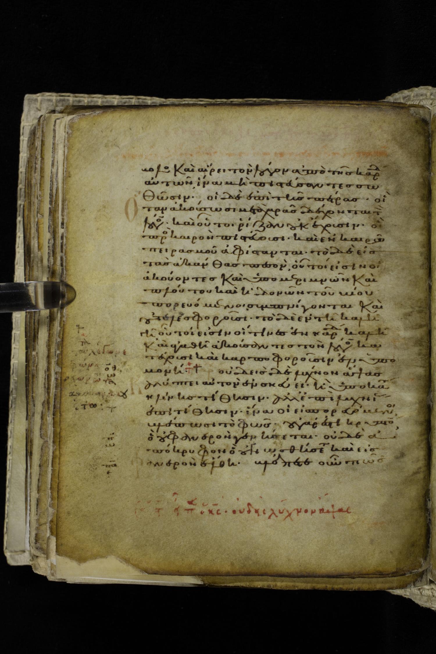 Eleventh century minuscule of the Gospels on parchment; 262 leaves, single column, 22-23 lines per column. Images were taken at the Hellenic Parliament Library in Athens.
