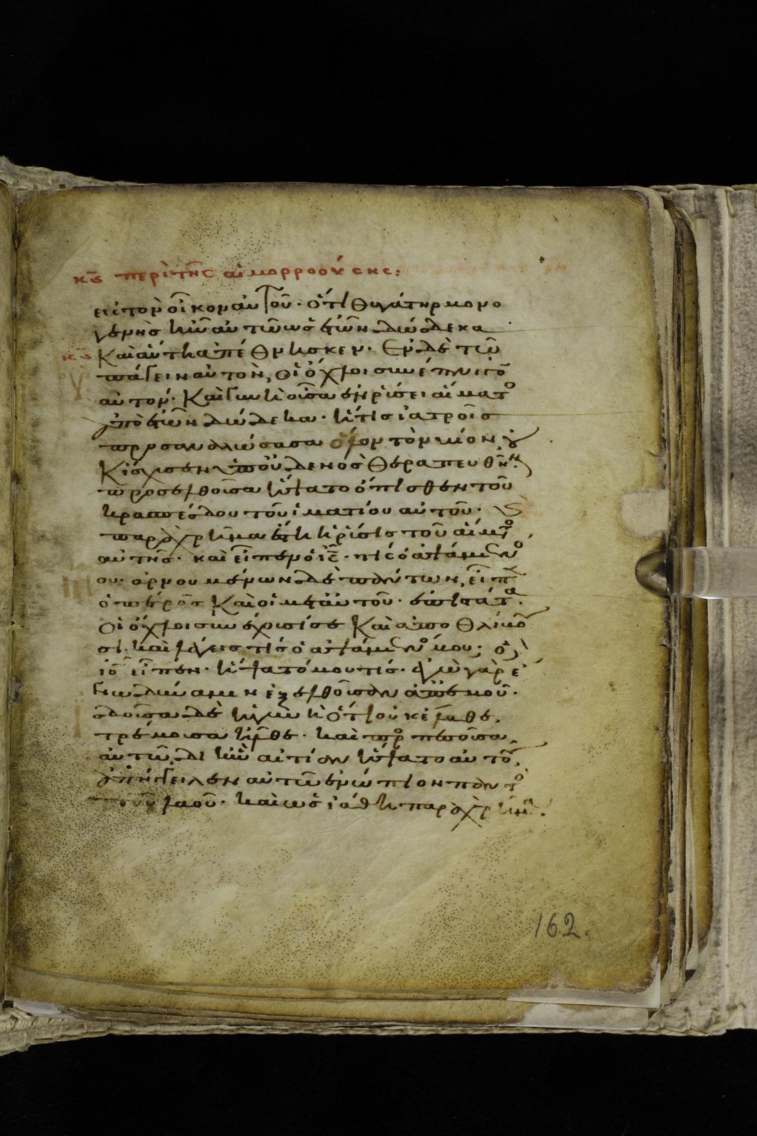 Eleventh century minuscule of the Gospels on parchment; 262 leaves, single column, 22-23 lines per column. Images were taken at the Hellenic Parliament Library in Athens.