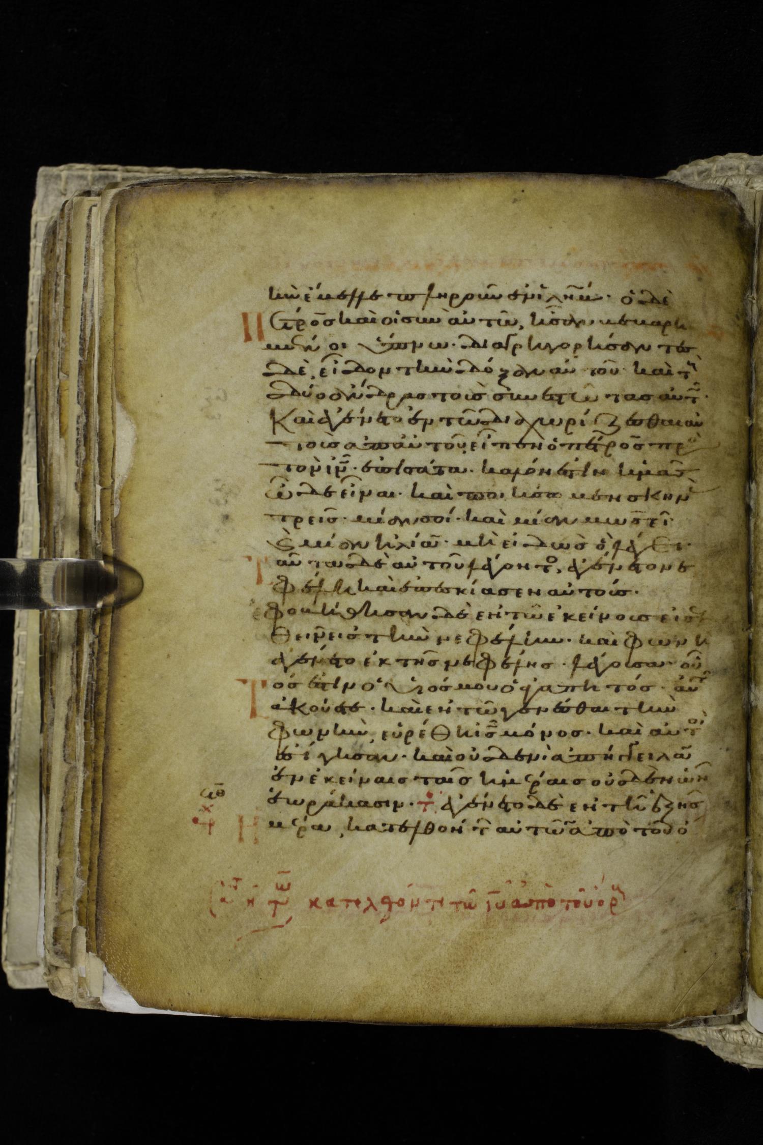 Eleventh century minuscule of the Gospels on parchment; 262 leaves, single column, 22-23 lines per column. Images were taken at the Hellenic Parliament Library in Athens.