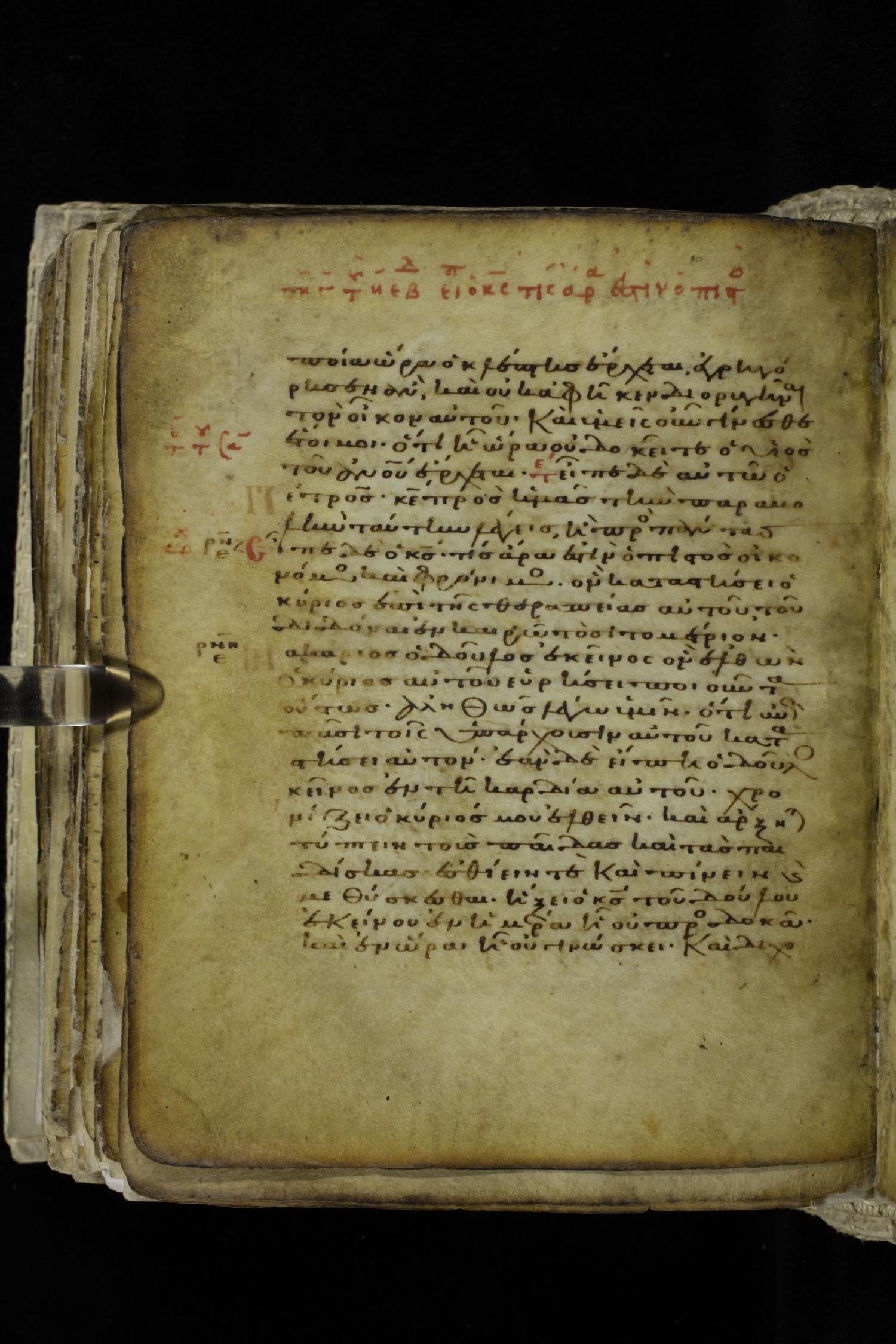 Eleventh century minuscule of the Gospels on parchment; 262 leaves, single column, 22-23 lines per column. Images were taken at the Hellenic Parliament Library in Athens.