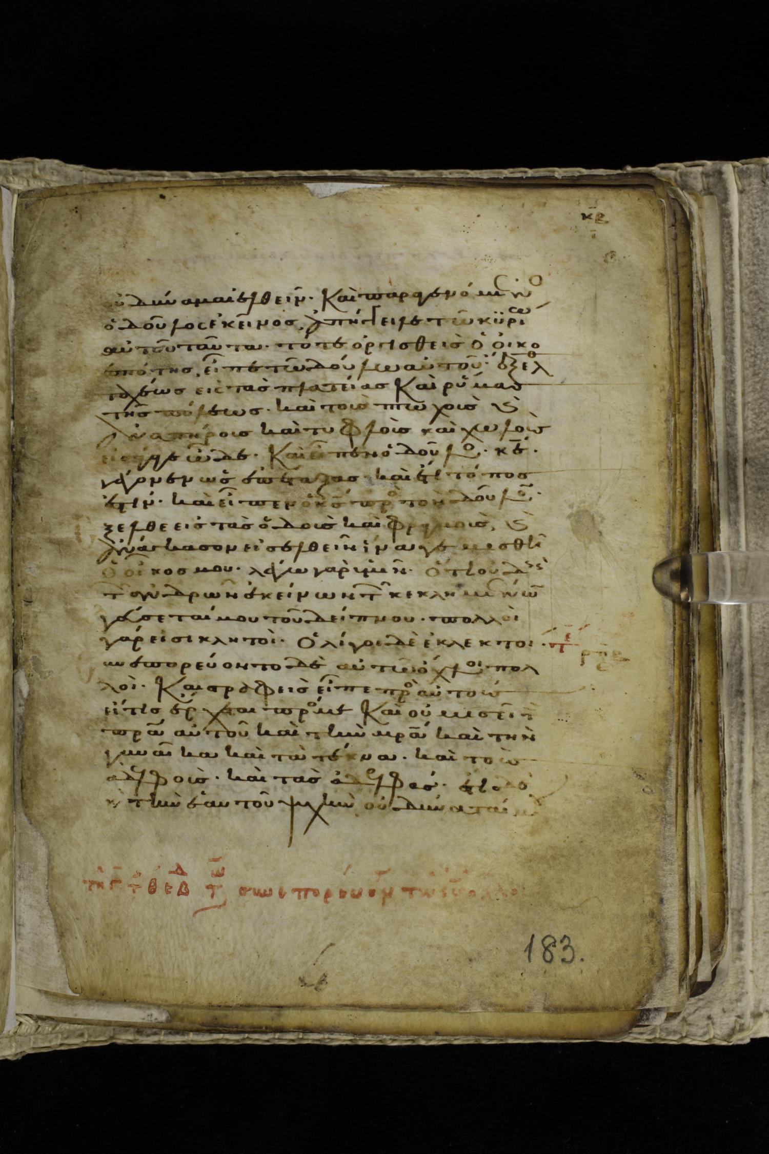 Eleventh century minuscule of the Gospels on parchment; 262 leaves, single column, 22-23 lines per column. Images were taken at the Hellenic Parliament Library in Athens.