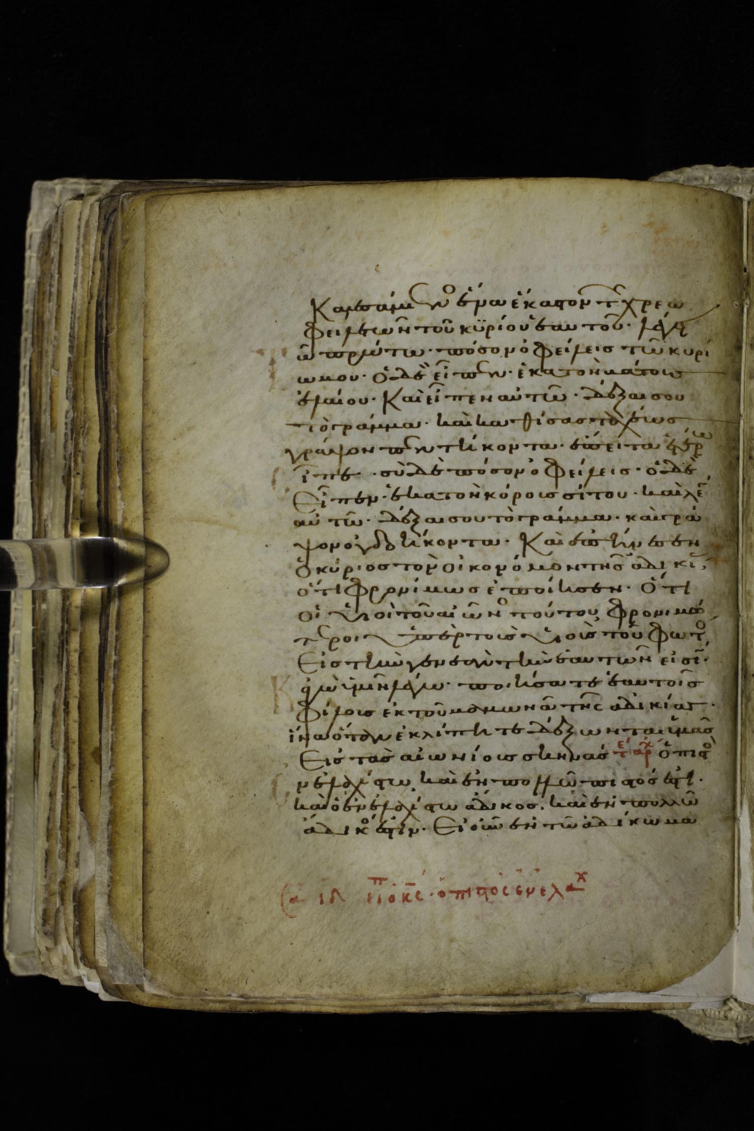 Eleventh century minuscule of the Gospels on parchment; 262 leaves, single column, 22-23 lines per column. Images were taken at the Hellenic Parliament Library in Athens.