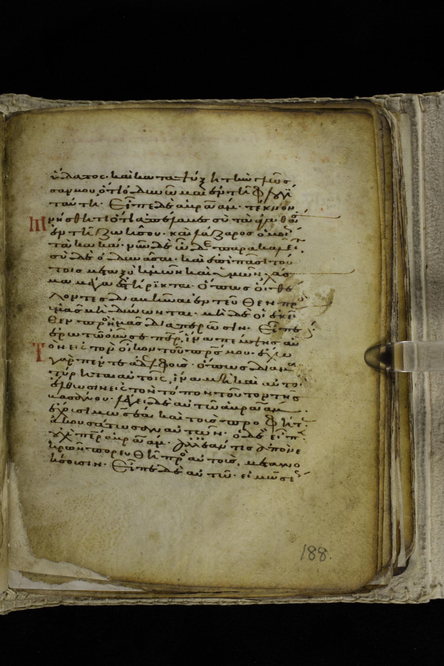 Eleventh century minuscule of the Gospels on parchment; 262 leaves, single column, 22-23 lines per column. Images were taken at the Hellenic Parliament Library in Athens.
