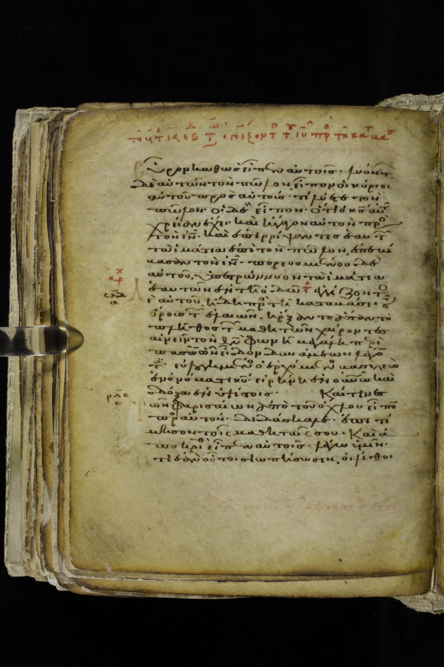 Eleventh century minuscule of the Gospels on parchment; 262 leaves, single column, 22-23 lines per column. Images were taken at the Hellenic Parliament Library in Athens.