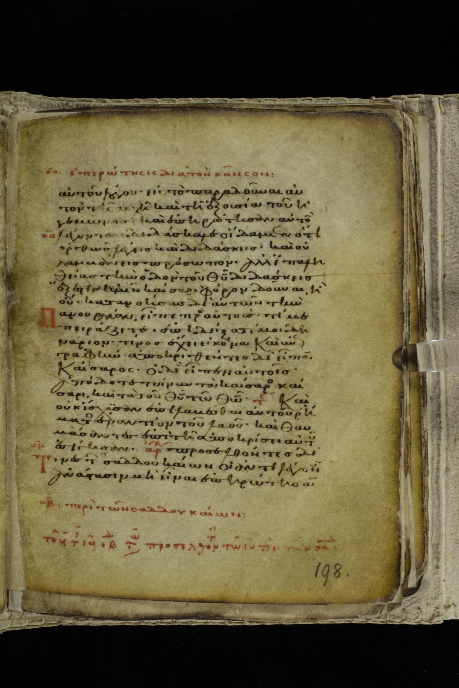 Eleventh century minuscule of the Gospels on parchment; 262 leaves, single column, 22-23 lines per column. Images were taken at the Hellenic Parliament Library in Athens.