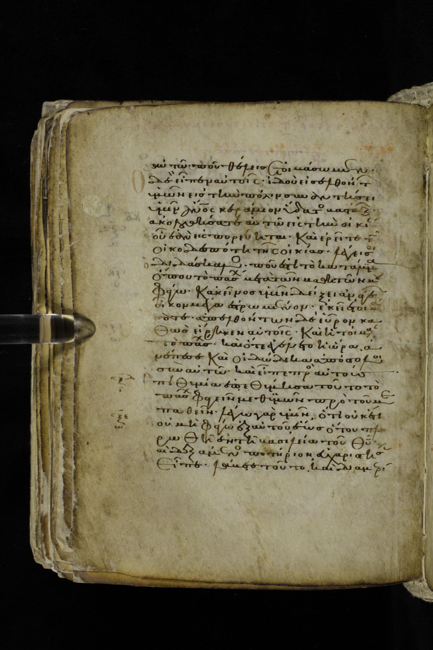 Eleventh century minuscule of the Gospels on parchment; 262 leaves, single column, 22-23 lines per column. Images were taken at the Hellenic Parliament Library in Athens.