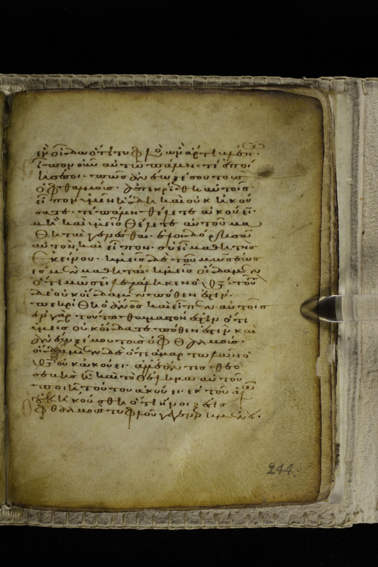 Eleventh century minuscule of the Gospels on parchment; 262 leaves, single column, 22-23 lines per column. Images were taken at the Hellenic Parliament Library in Athens.