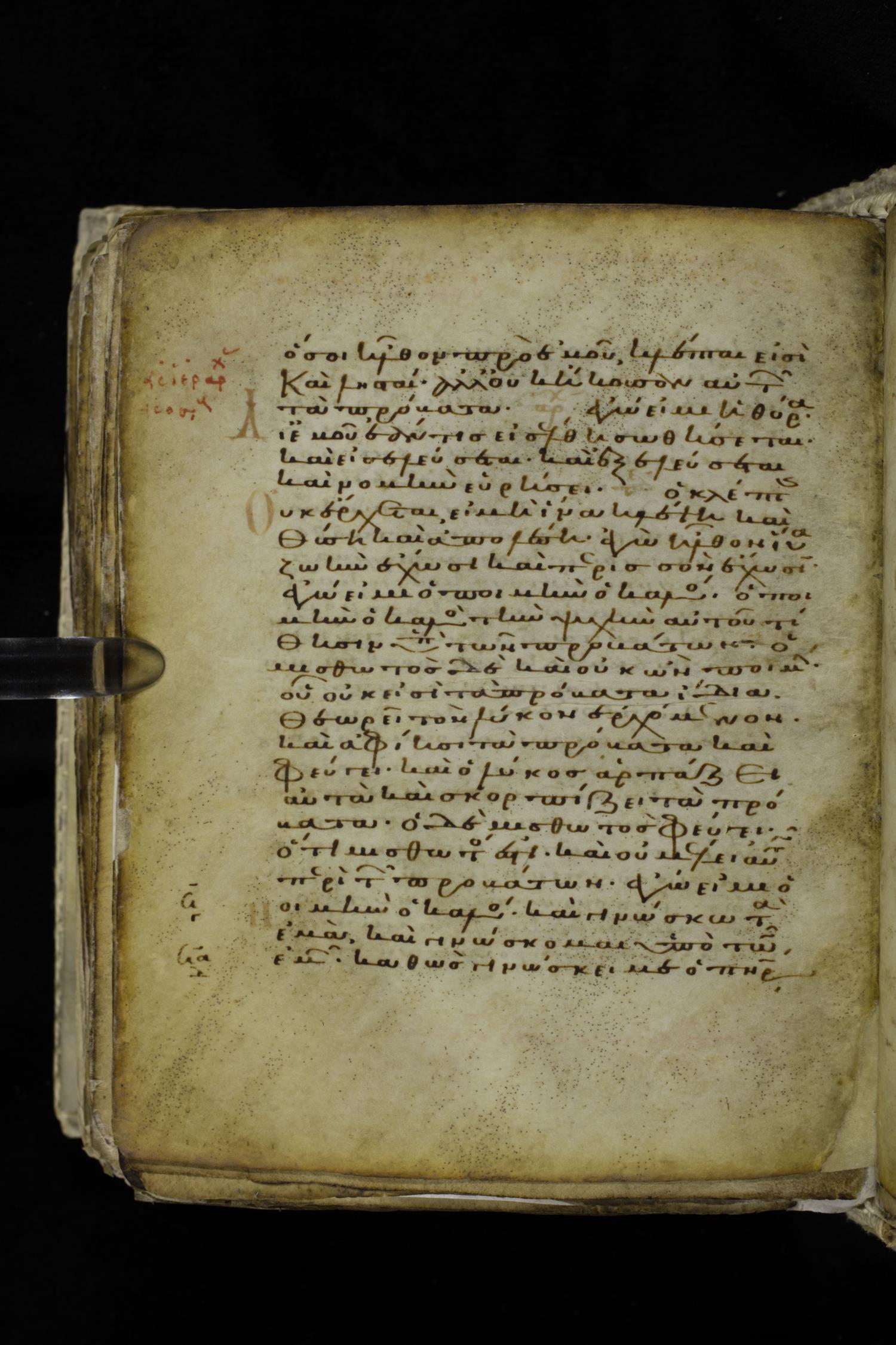 Eleventh century minuscule of the Gospels on parchment; 262 leaves, single column, 22-23 lines per column. Images were taken at the Hellenic Parliament Library in Athens.