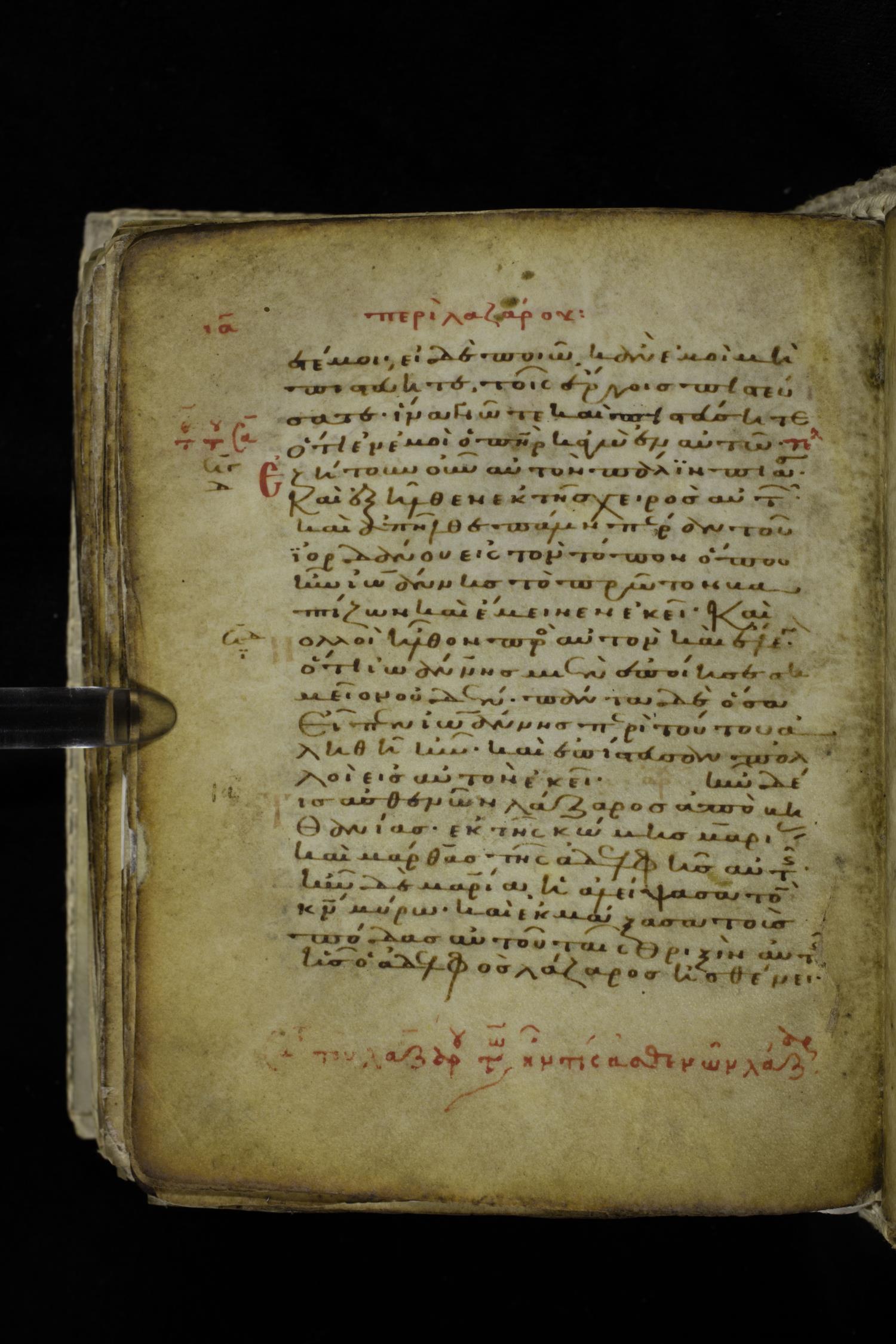 Ἦν δέ τις ἀσθενῶν, Λάζαρος ἀπὸ Βηθανίας ἐκ τῆς κώμης Μαρίας καὶ Μάρθας τῆς ἀδελφῆς αὐτῆς.