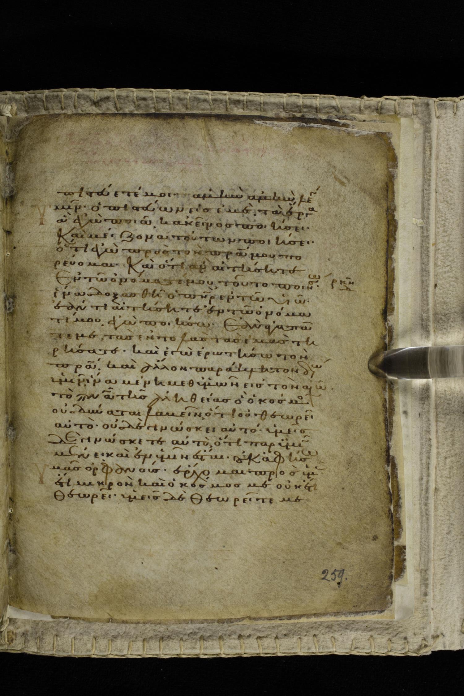 Eleventh century minuscule of the Gospels on parchment; 262 leaves, single column, 22-23 lines per column. Images were taken at the Hellenic Parliament Library in Athens.