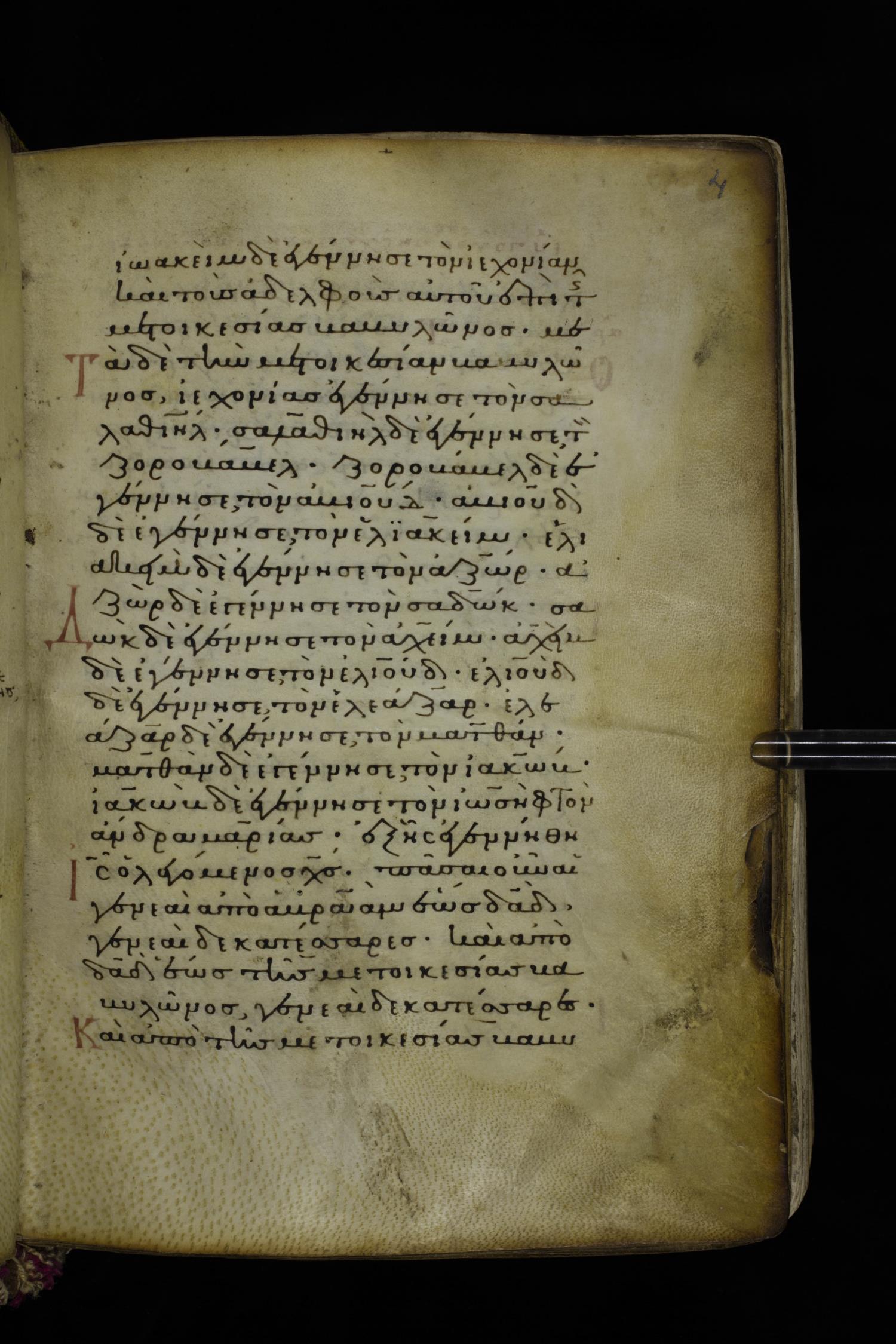 Fourteenth century minuscule (dated to 1321) of the Gospels on parchment; 290 leaves, 1 column, 21-23 lines per column. Images were taken at the National Library of Greece in Athens.