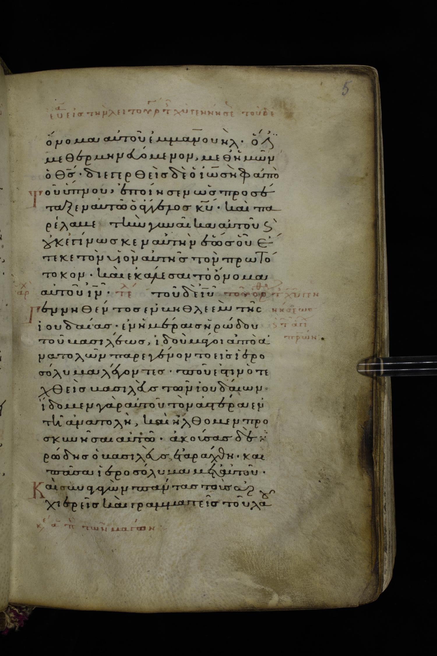 Fourteenth century minuscule (dated to 1321) of the Gospels on parchment; 290 leaves, 1 column, 21-23 lines per column. Images were taken at the National Library of Greece in Athens.