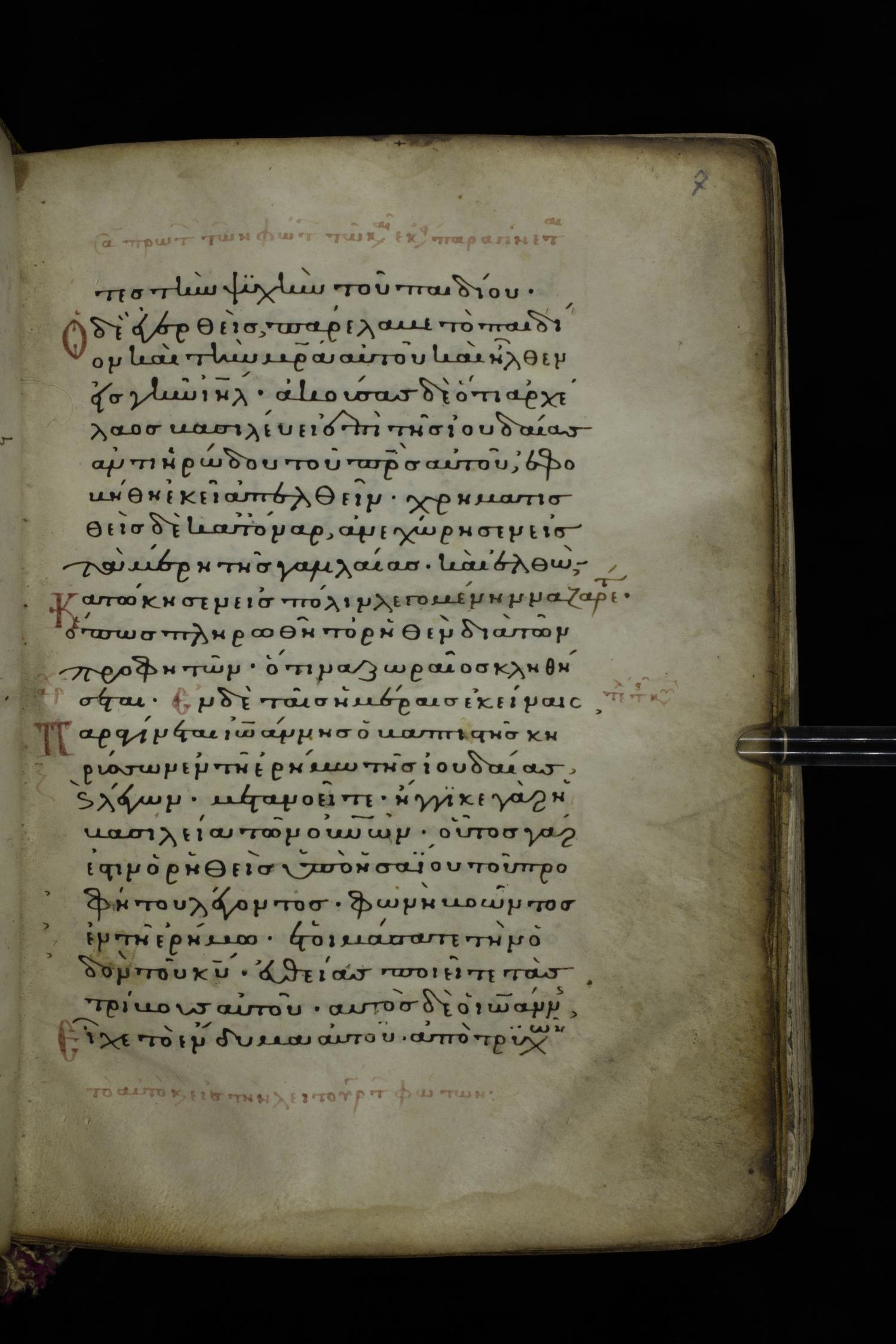 Fourteenth century minuscule (dated to 1321) of the Gospels on parchment; 290 leaves, 1 column, 21-23 lines per column. Images were taken at the National Library of Greece in Athens.