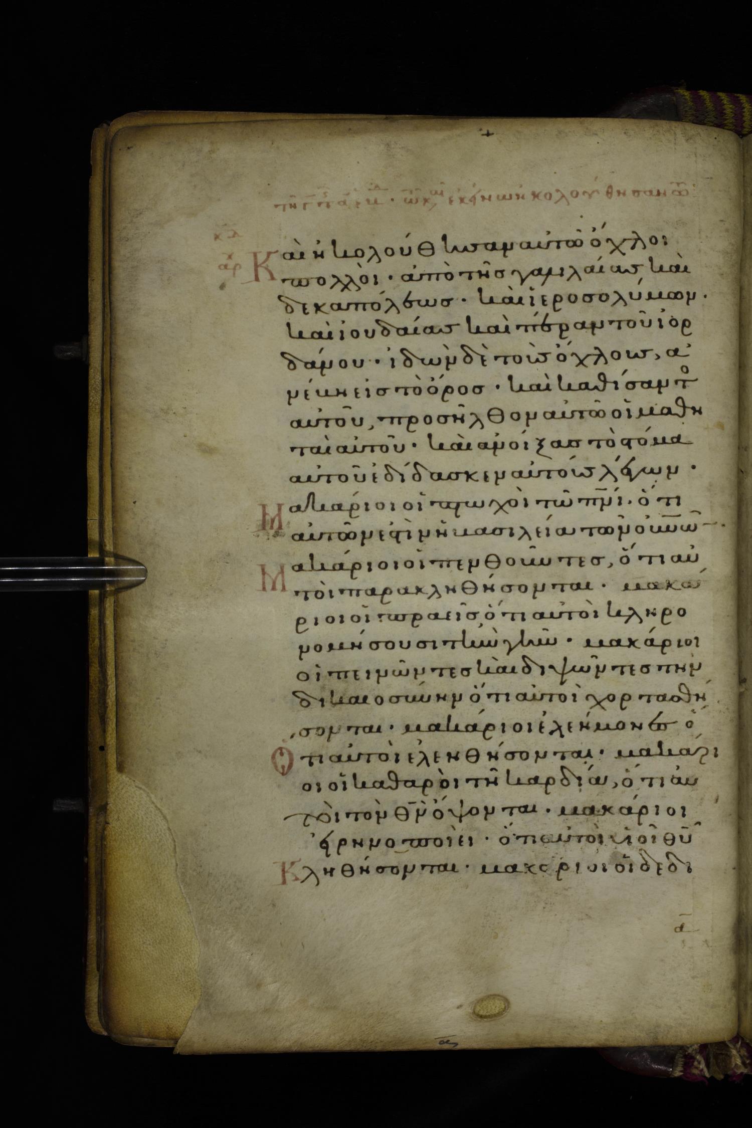 Fourteenth century minuscule (dated to 1321) of the Gospels on parchment; 290 leaves, 1 column, 21-23 lines per column. Images were taken at the National Library of Greece in Athens.