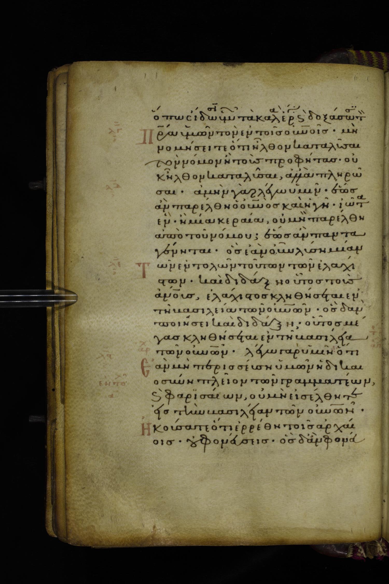 Fourteenth century minuscule (dated to 1321) of the Gospels on parchment; 290 leaves, 1 column, 21-23 lines per column. Images were taken at the National Library of Greece in Athens.