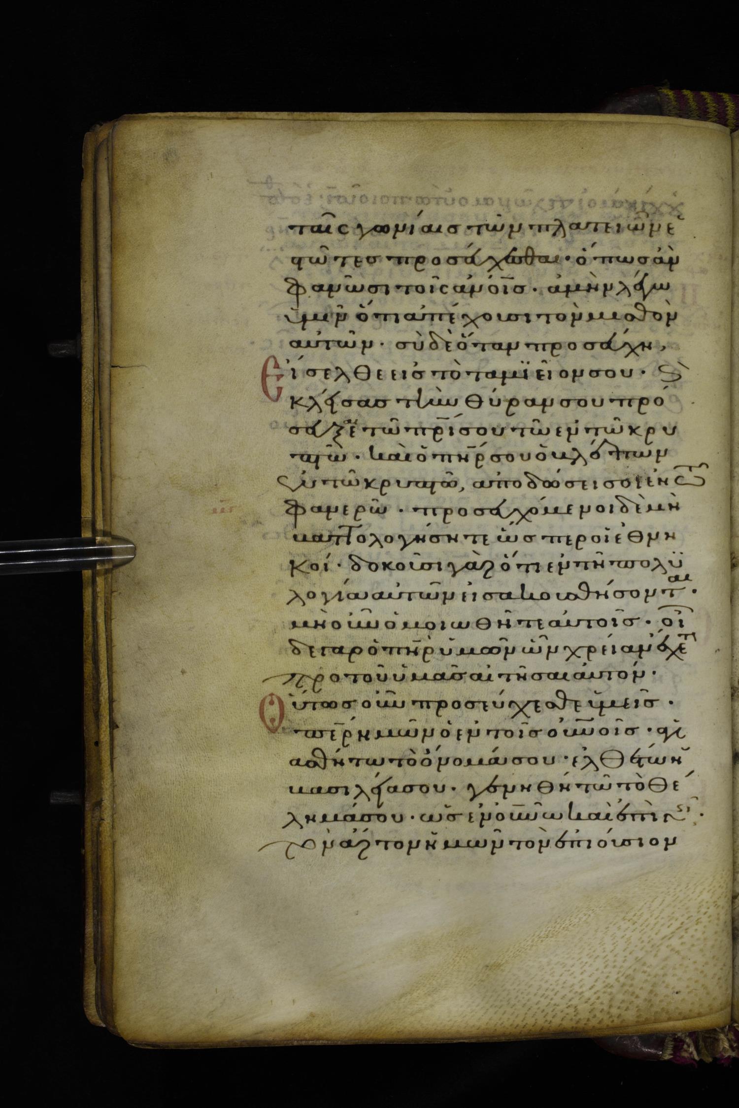Fourteenth century minuscule (dated to 1321) of the Gospels on parchment; 290 leaves, 1 column, 21-23 lines per column. Images were taken at the National Library of Greece in Athens.