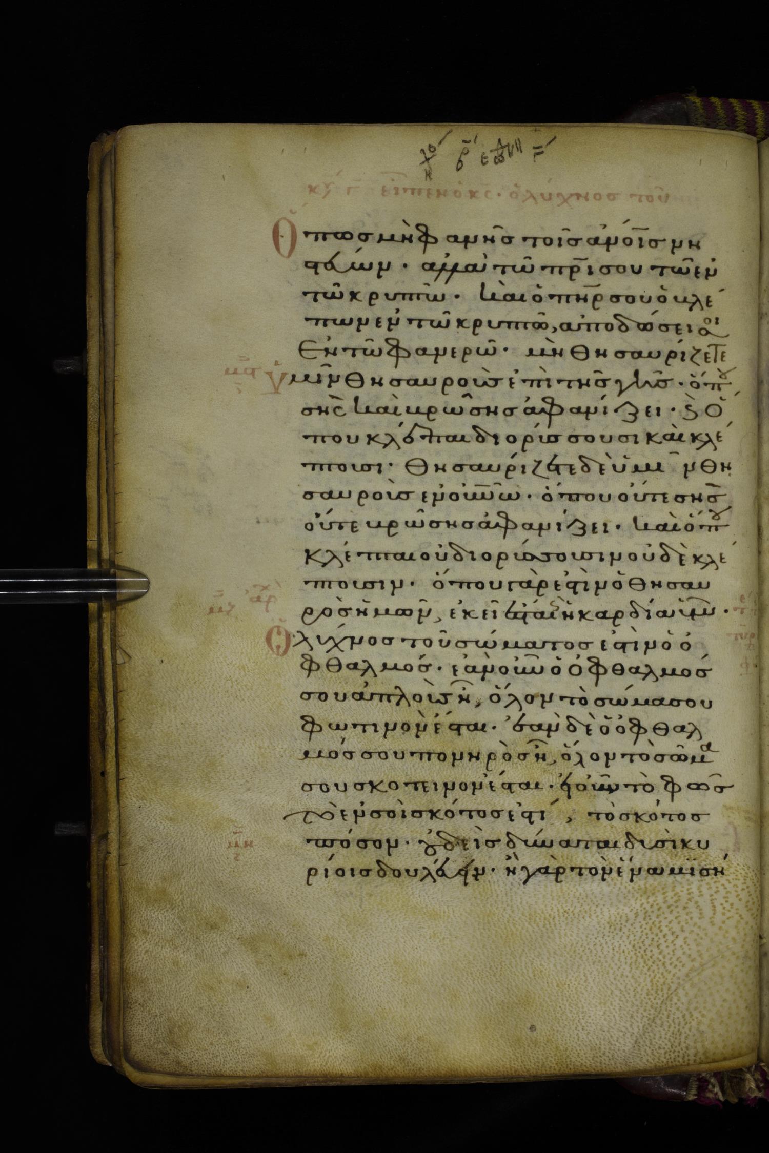 Fourteenth century minuscule (dated to 1321) of the Gospels on parchment; 290 leaves, 1 column, 21-23 lines per column. Images were taken at the National Library of Greece in Athens.
