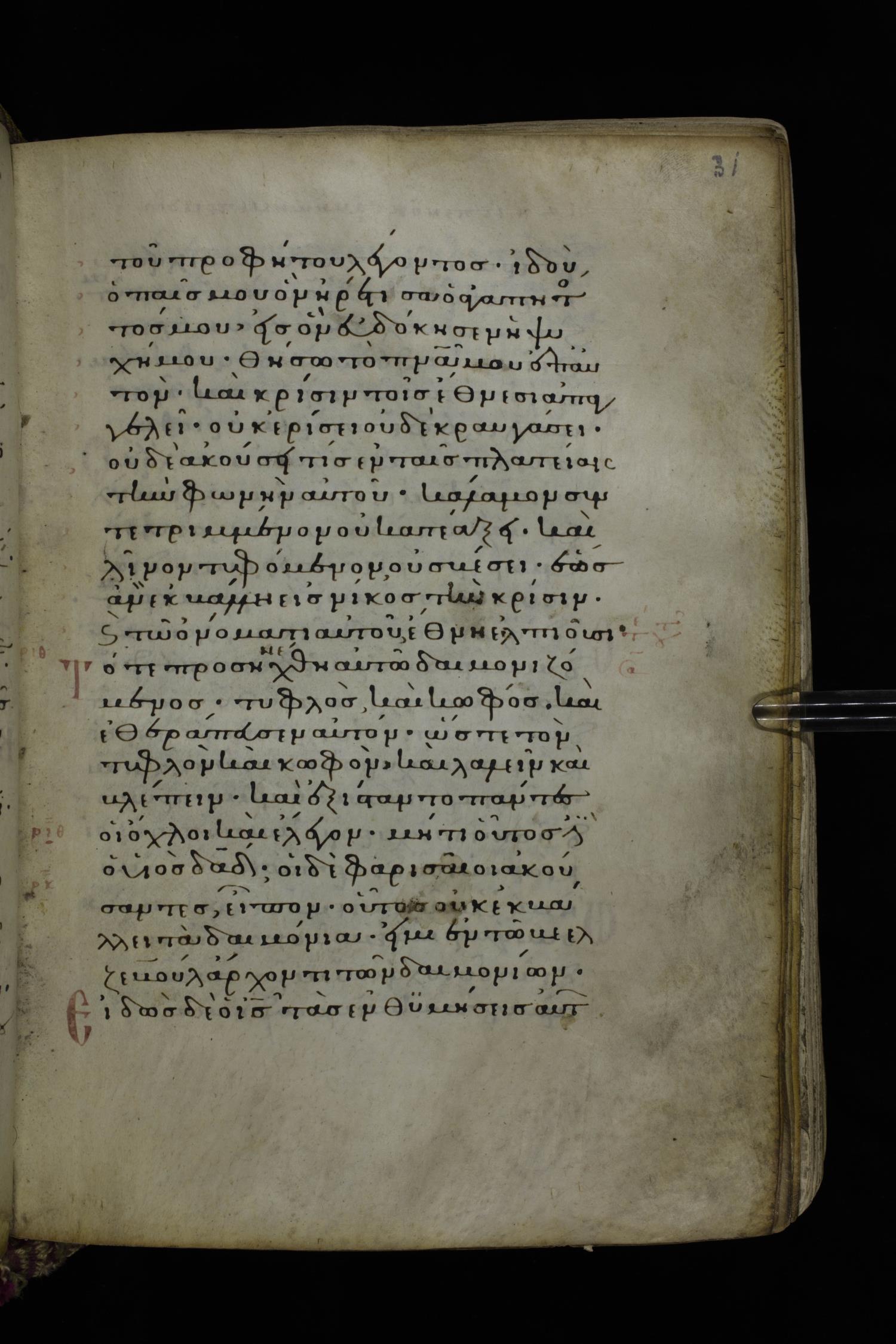 Fourteenth century minuscule (dated to 1321) of the Gospels on parchment; 290 leaves, 1 column, 21-23 lines per column. Images were taken at the National Library of Greece in Athens.