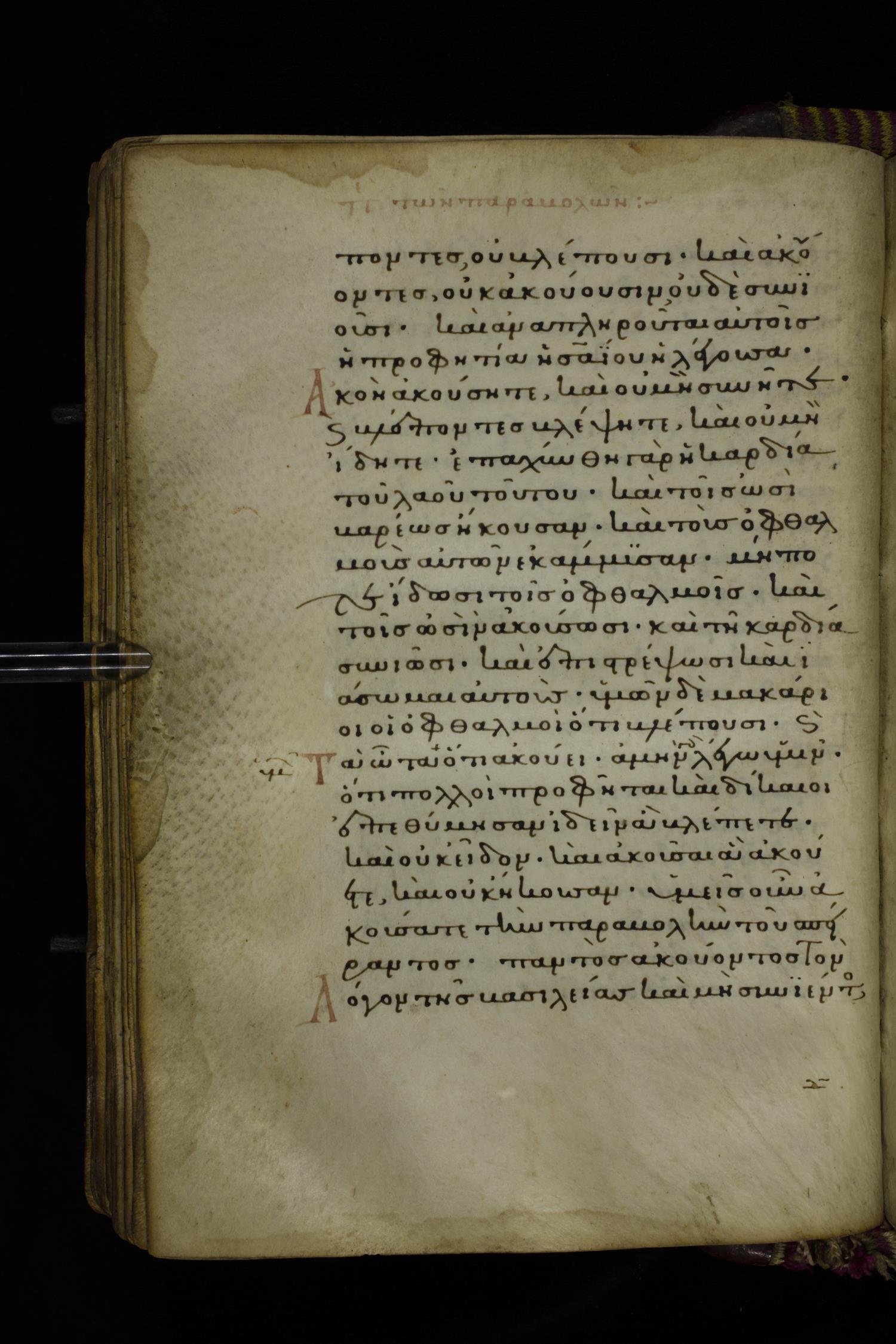 Fourteenth century minuscule (dated to 1321) of the Gospels on parchment; 290 leaves, 1 column, 21-23 lines per column. Images were taken at the National Library of Greece in Athens.