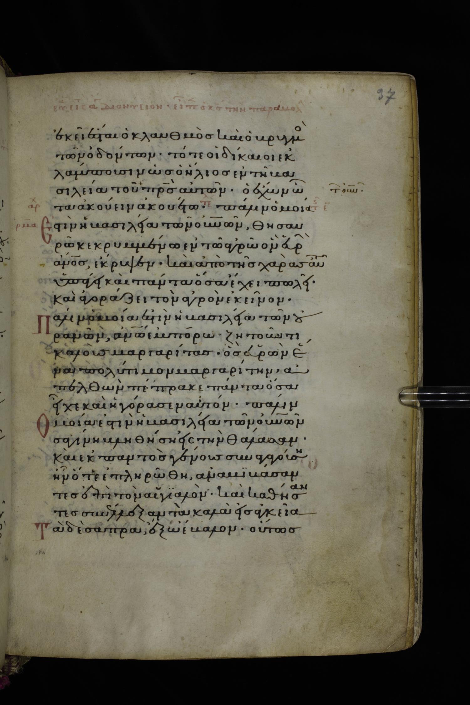 Fourteenth century minuscule (dated to 1321) of the Gospels on parchment; 290 leaves, 1 column, 21-23 lines per column. Images were taken at the National Library of Greece in Athens.