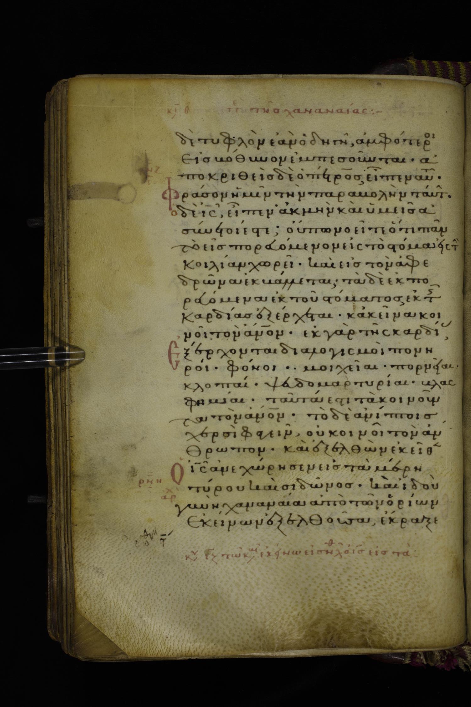 Fourteenth century minuscule (dated to 1321) of the Gospels on parchment; 290 leaves, 1 column, 21-23 lines per column. Images were taken at the National Library of Greece in Athens.