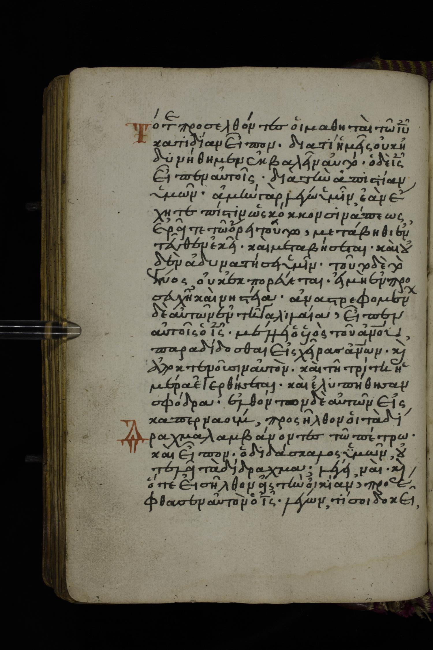 Fourteenth century minuscule (dated to 1321) of the Gospels on parchment; 290 leaves, 1 column, 21-23 lines per column. Images were taken at the National Library of Greece in Athens.