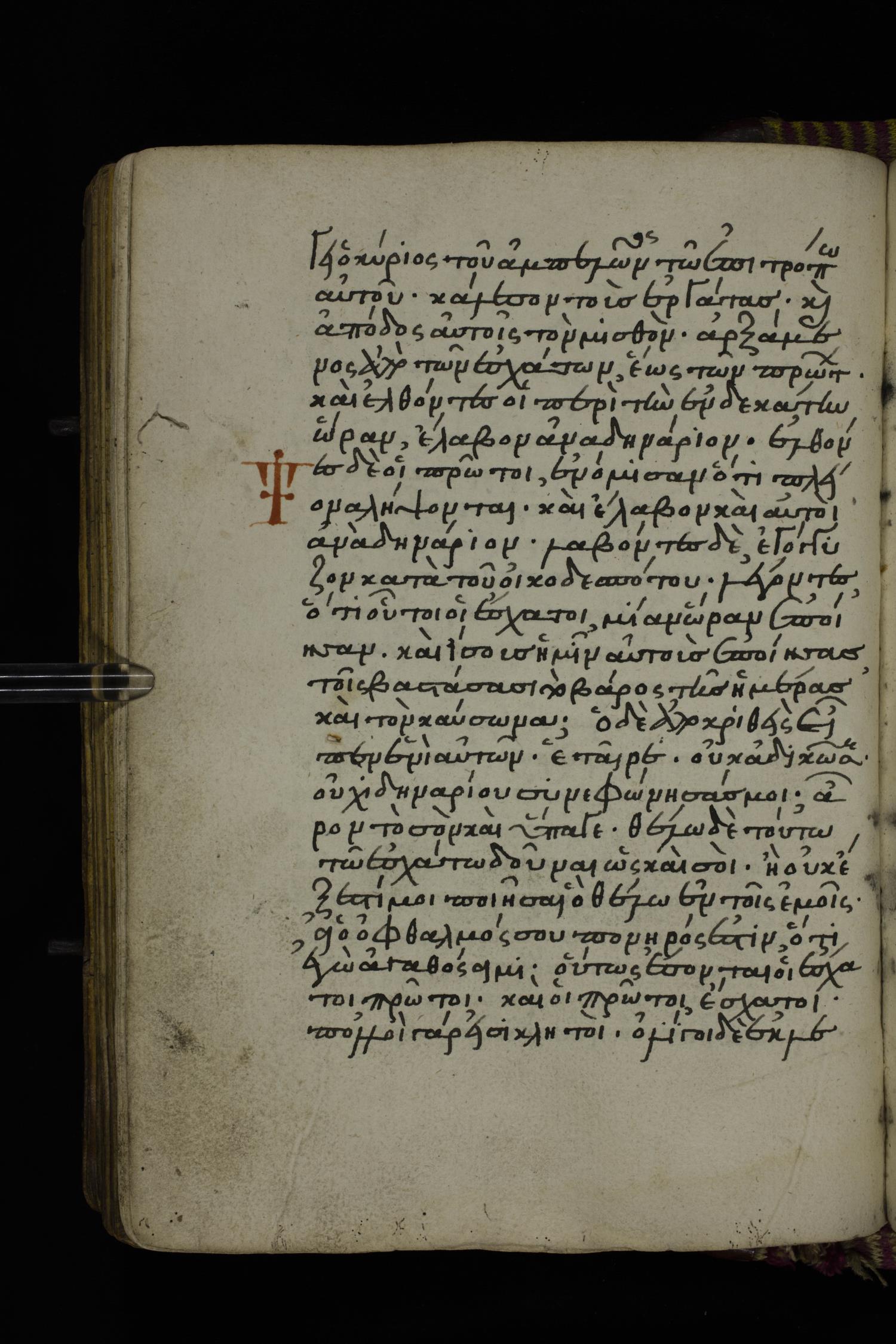 Fourteenth century minuscule (dated to 1321) of the Gospels on parchment; 290 leaves, 1 column, 21-23 lines per column. Images were taken at the National Library of Greece in Athens.