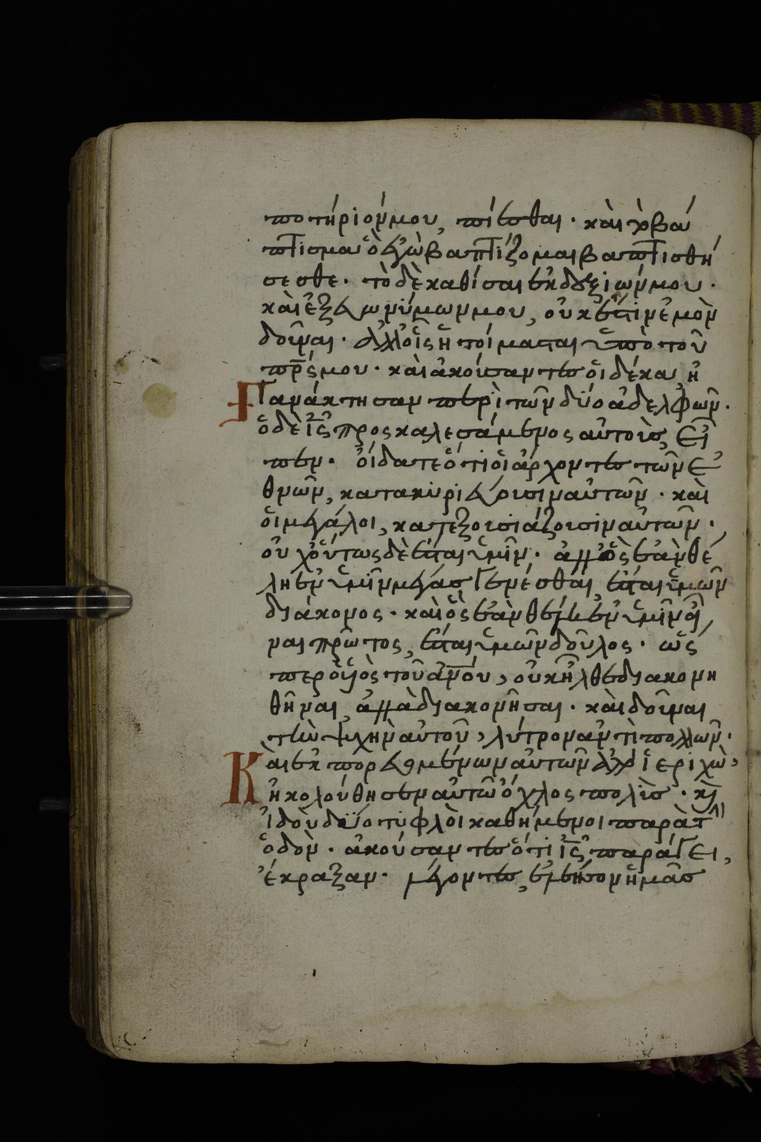 Fourteenth century minuscule (dated to 1321) of the Gospels on parchment; 290 leaves, 1 column, 21-23 lines per column. Images were taken at the National Library of Greece in Athens.