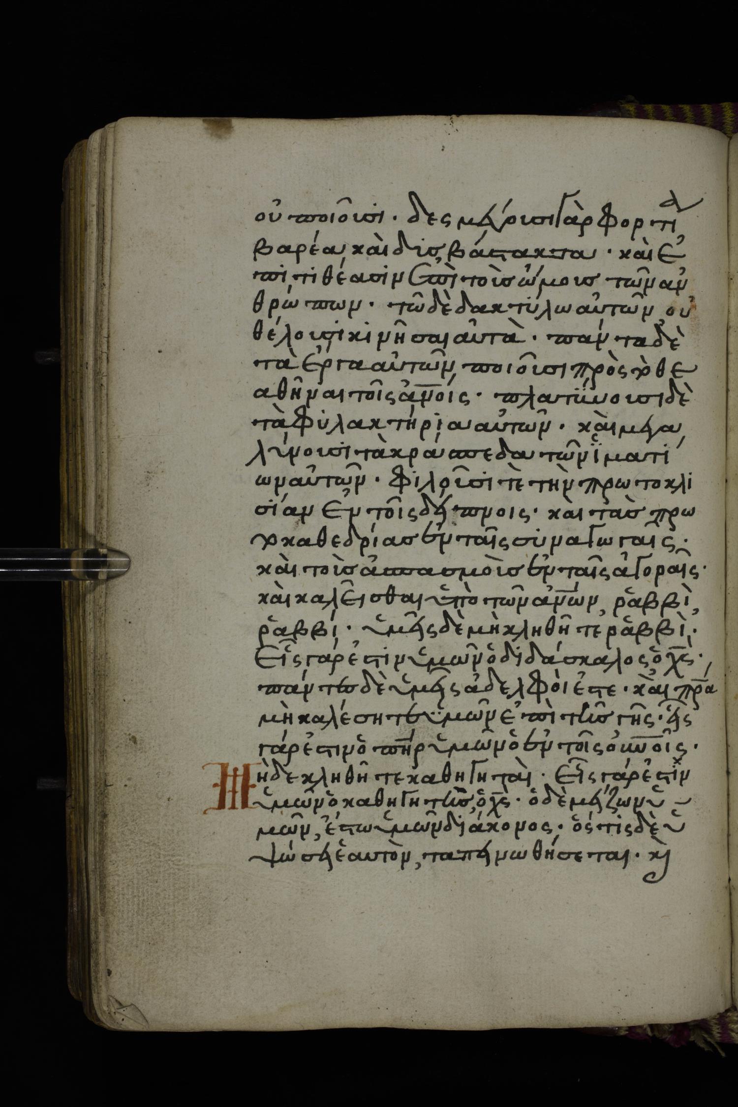 καὶ τοὺς ἀσπασμοὺς ἐν ταῖς ἀγοραῖς καὶ καλεῖσθαι ὑπὸ τῶν ἀνθρώπων Ῥαββεί / ῥαββί.