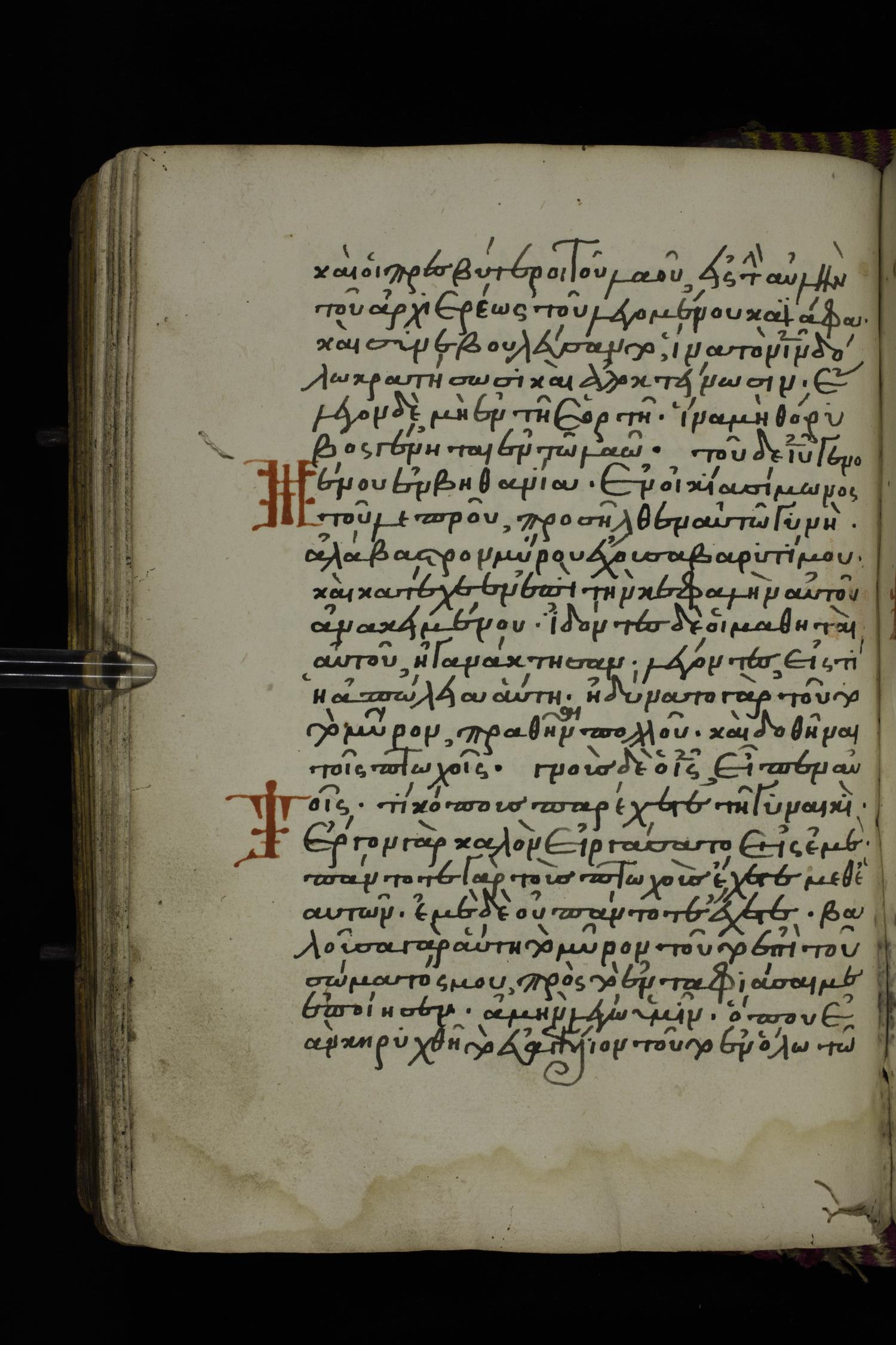 Fourteenth century minuscule (dated to 1321) of the Gospels on parchment; 290 leaves, 1 column, 21-23 lines per column. Images were taken at the National Library of Greece in Athens.