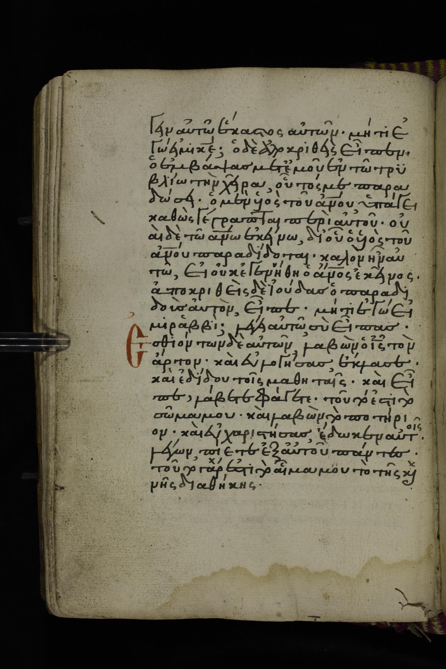 Fourteenth century minuscule (dated to 1321) of the Gospels on parchment; 290 leaves, 1 column, 21-23 lines per column. Images were taken at the National Library of Greece in Athens.