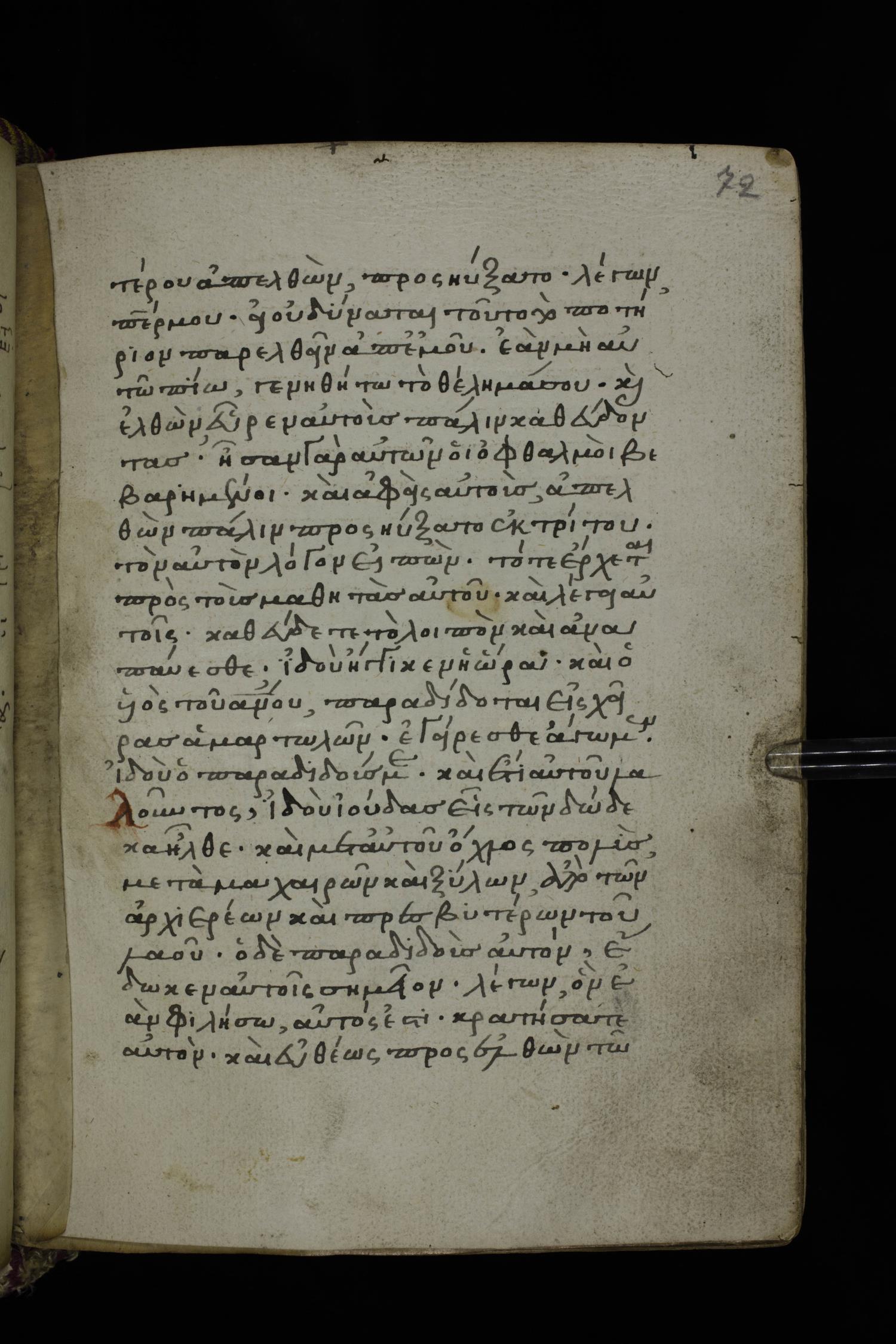 Fourteenth century minuscule (dated to 1321) of the Gospels on parchment; 290 leaves, 1 column, 21-23 lines per column. Images were taken at the National Library of Greece in Athens.