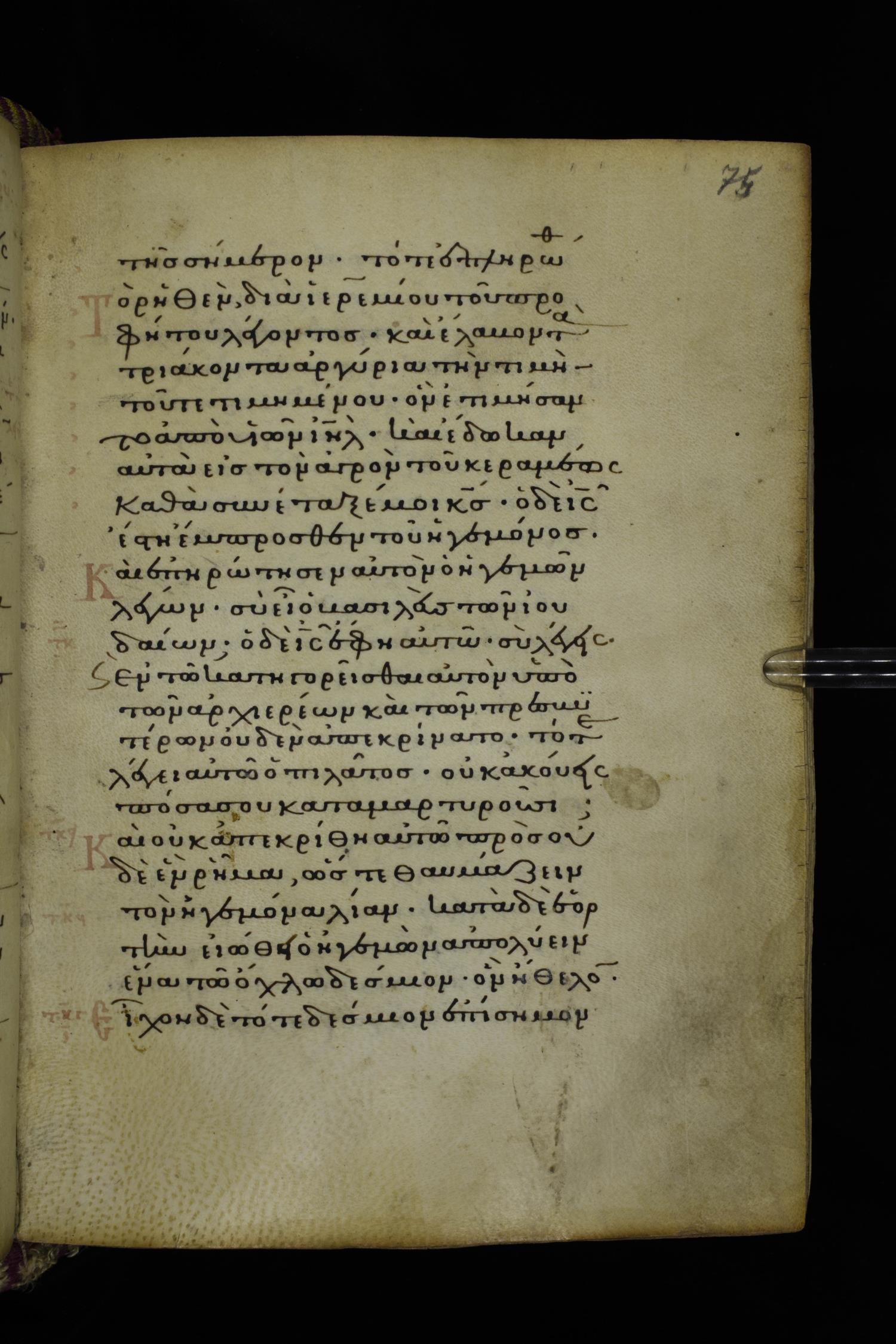 Fourteenth century minuscule (dated to 1321) of the Gospels on parchment; 290 leaves, 1 column, 21-23 lines per column. Images were taken at the National Library of Greece in Athens.