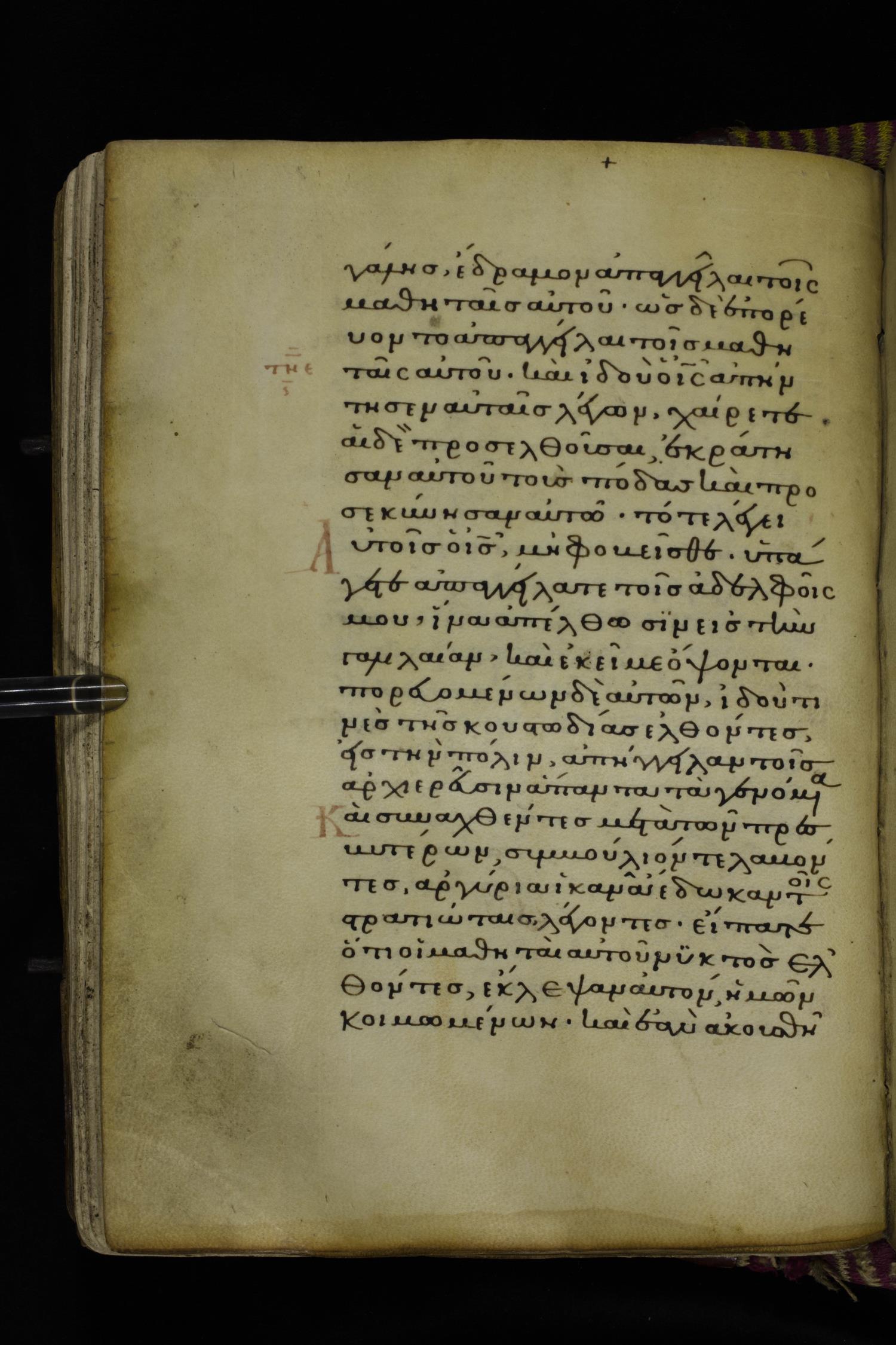 Fourteenth century minuscule (dated to 1321) of the Gospels on parchment; 290 leaves, 1 column, 21-23 lines per column. Images were taken at the National Library of Greece in Athens.