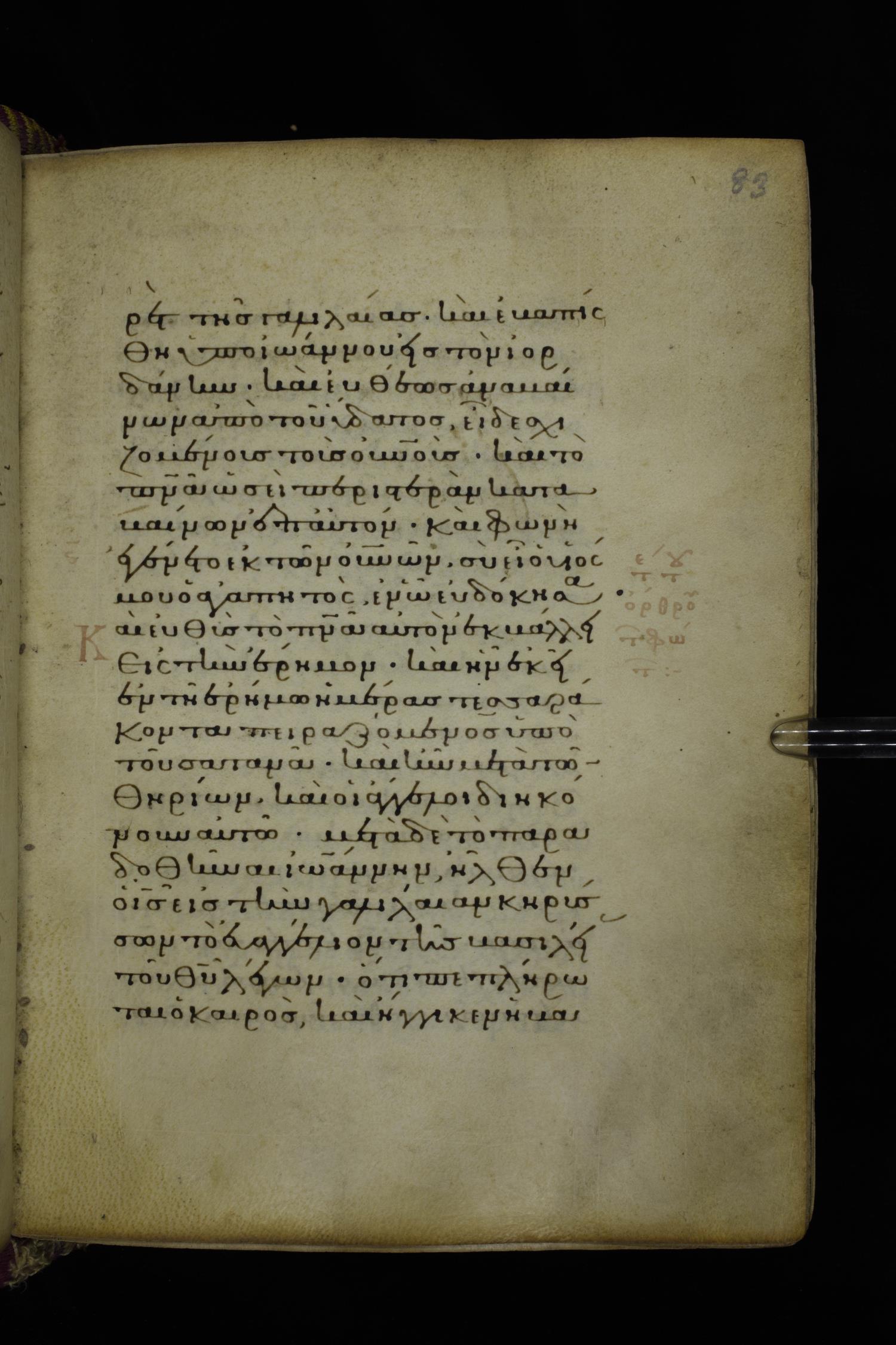 Fourteenth century minuscule (dated to 1321) of the Gospels on parchment; 290 leaves, 1 column, 21-23 lines per column. Images were taken at the National Library of Greece in Athens.