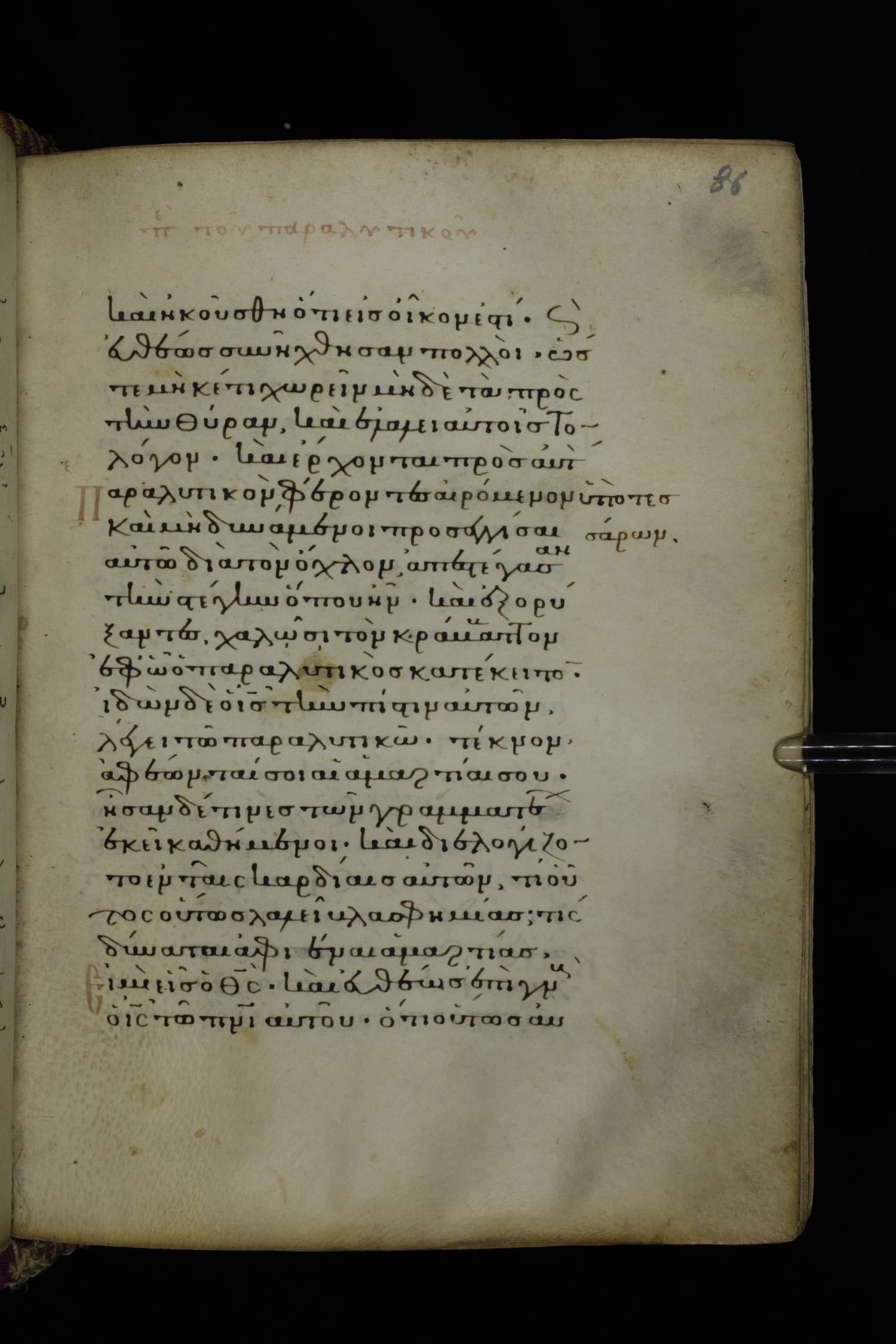 Fourteenth century minuscule (dated to 1321) of the Gospels on parchment; 290 leaves, 1 column, 21-23 lines per column. Images were taken at the National Library of Greece in Athens.