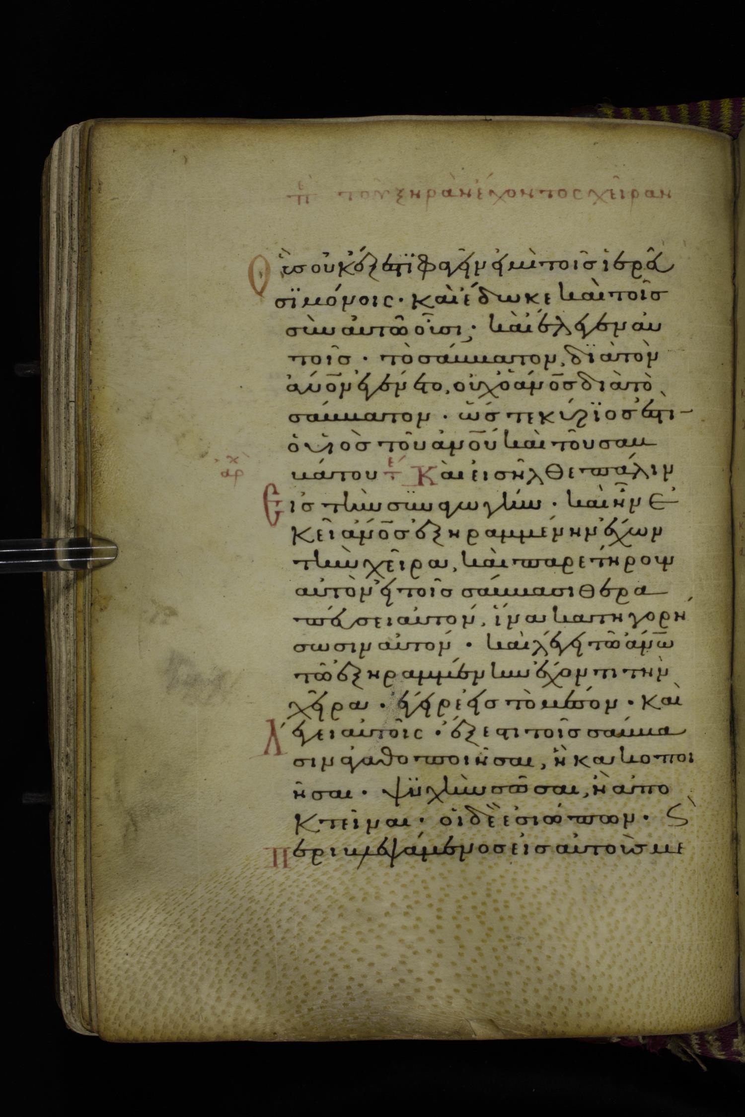 Fourteenth century minuscule (dated to 1321) of the Gospels on parchment; 290 leaves, 1 column, 21-23 lines per column. Images were taken at the National Library of Greece in Athens.