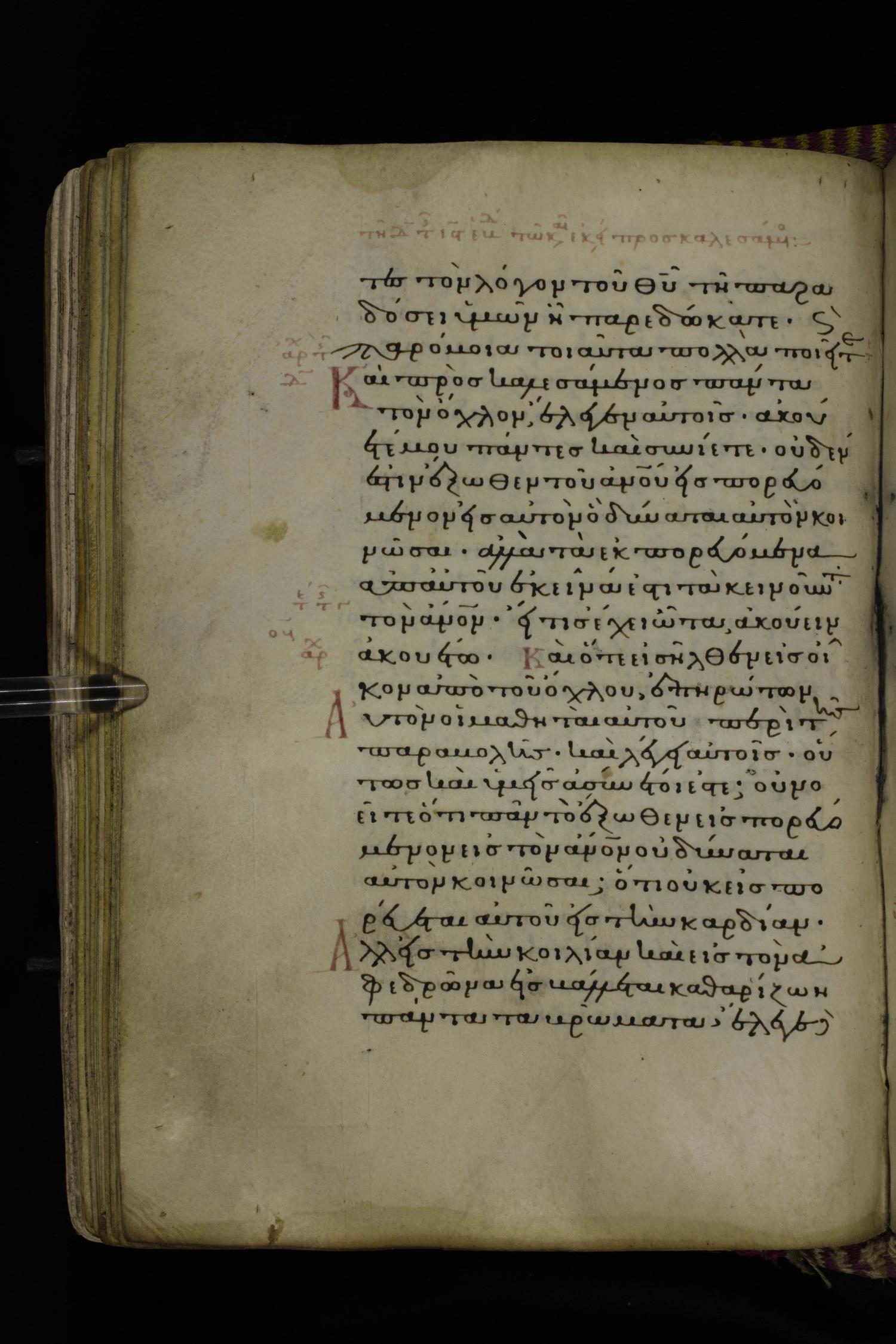 Fourteenth century minuscule (dated to 1321) of the Gospels on parchment; 290 leaves, 1 column, 21-23 lines per column. Images were taken at the National Library of Greece in Athens.