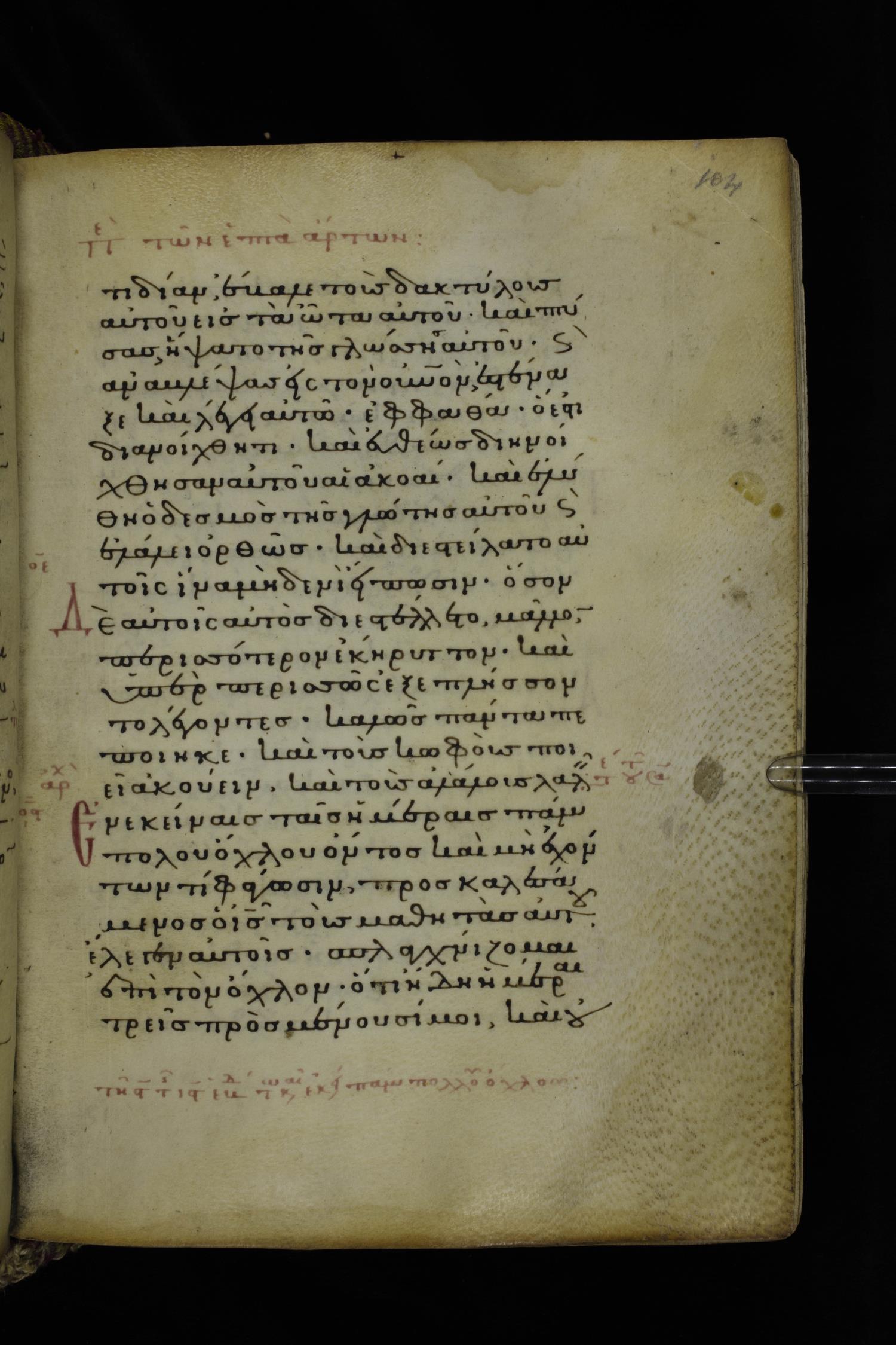 Fourteenth century minuscule (dated to 1321) of the Gospels on parchment; 290 leaves, 1 column, 21-23 lines per column. Images were taken at the National Library of Greece in Athens.