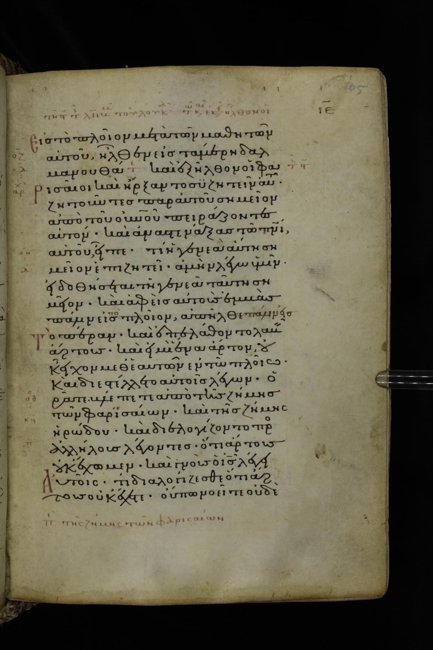 Fourteenth century minuscule (dated to 1321) of the Gospels on parchment; 290 leaves, 1 column, 21-23 lines per column. Images were taken at the National Library of Greece in Athens.