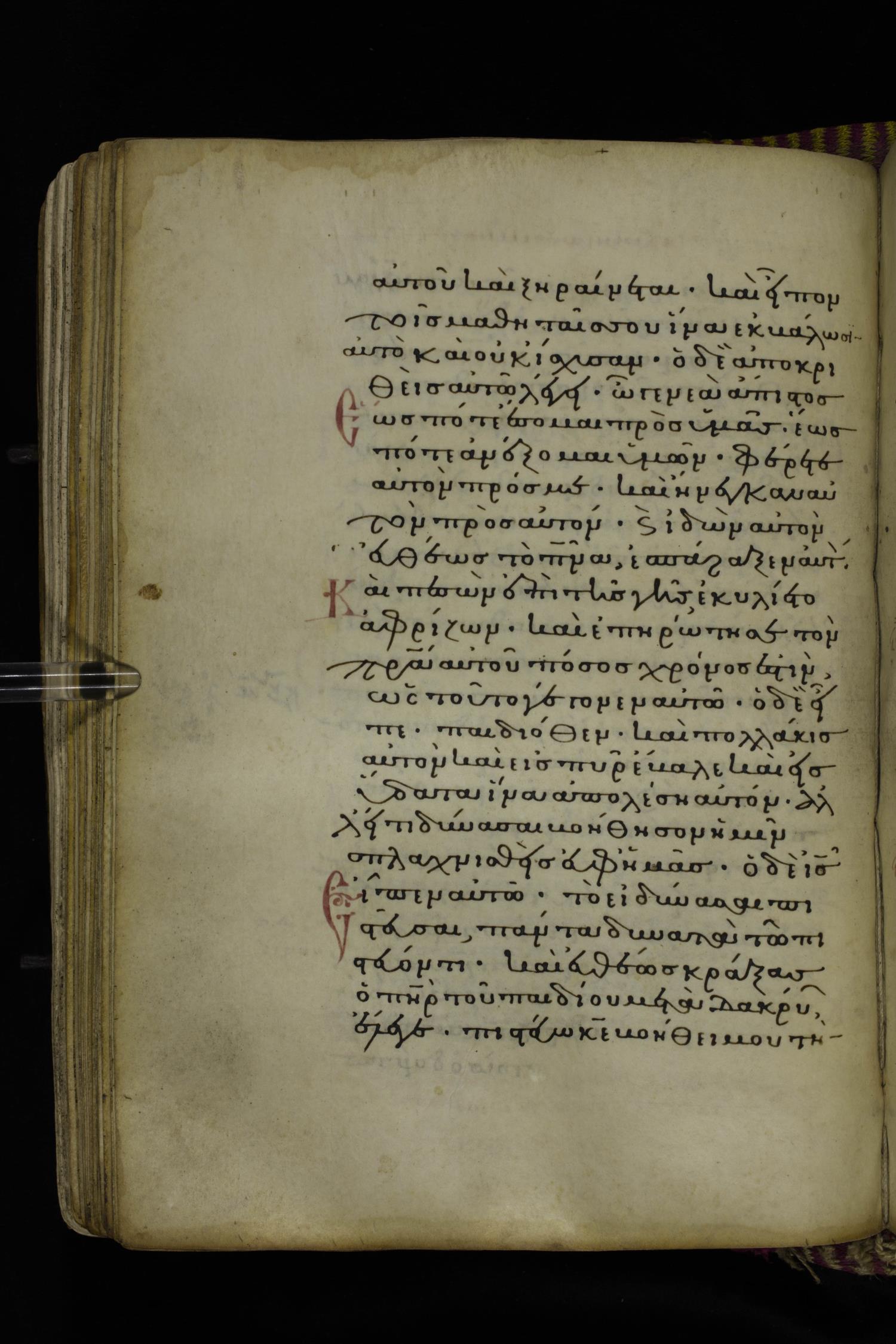 Fourteenth century minuscule (dated to 1321) of the Gospels on parchment; 290 leaves, 1 column, 21-23 lines per column. Images were taken at the National Library of Greece in Athens.