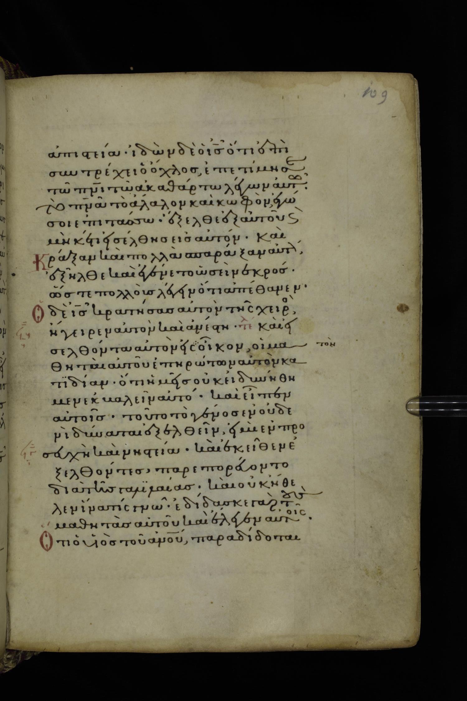 Fourteenth century minuscule (dated to 1321) of the Gospels on parchment; 290 leaves, 1 column, 21-23 lines per column. Images were taken at the National Library of Greece in Athens.