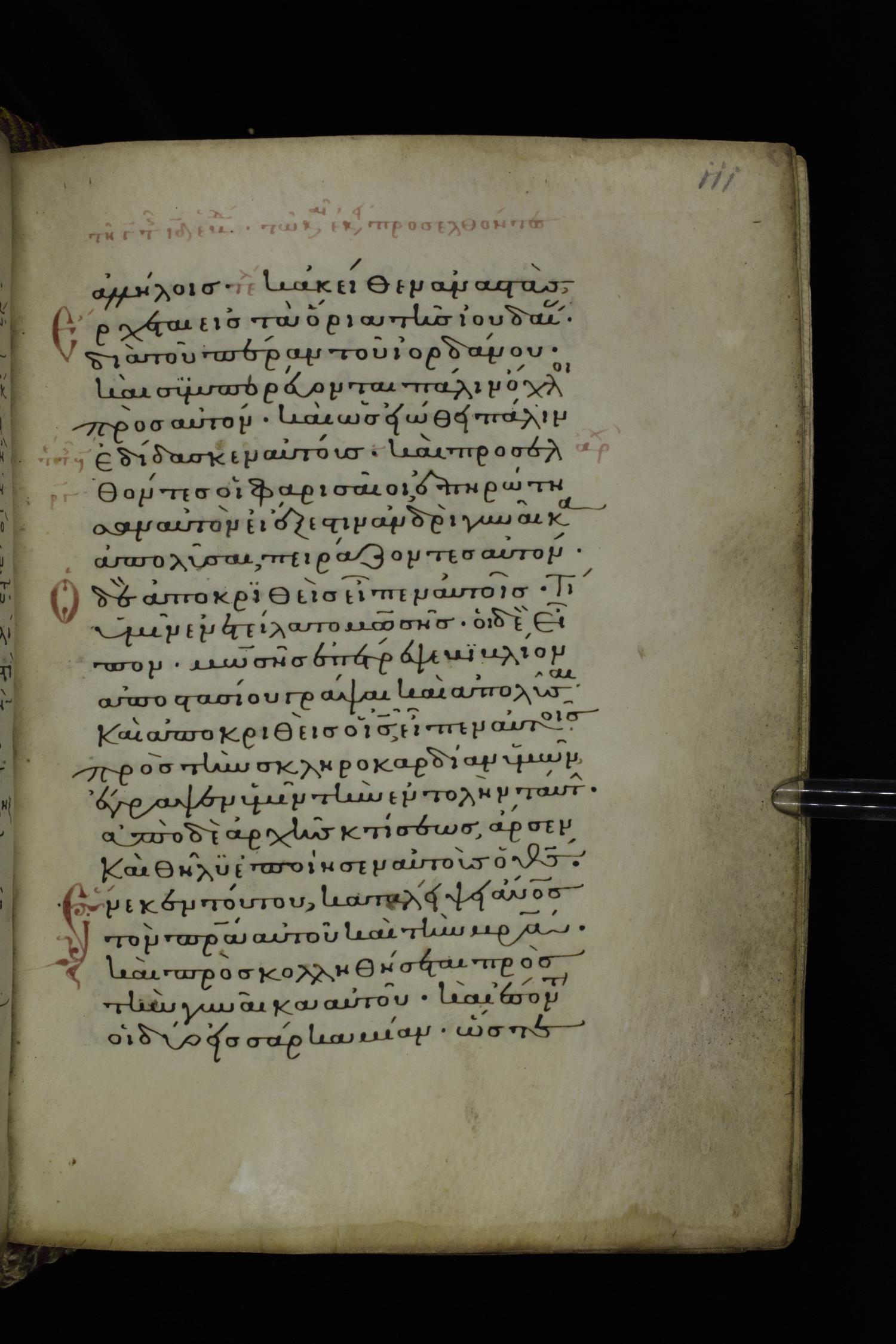 Fourteenth century minuscule (dated to 1321) of the Gospels on parchment; 290 leaves, 1 column, 21-23 lines per column. Images were taken at the National Library of Greece in Athens.